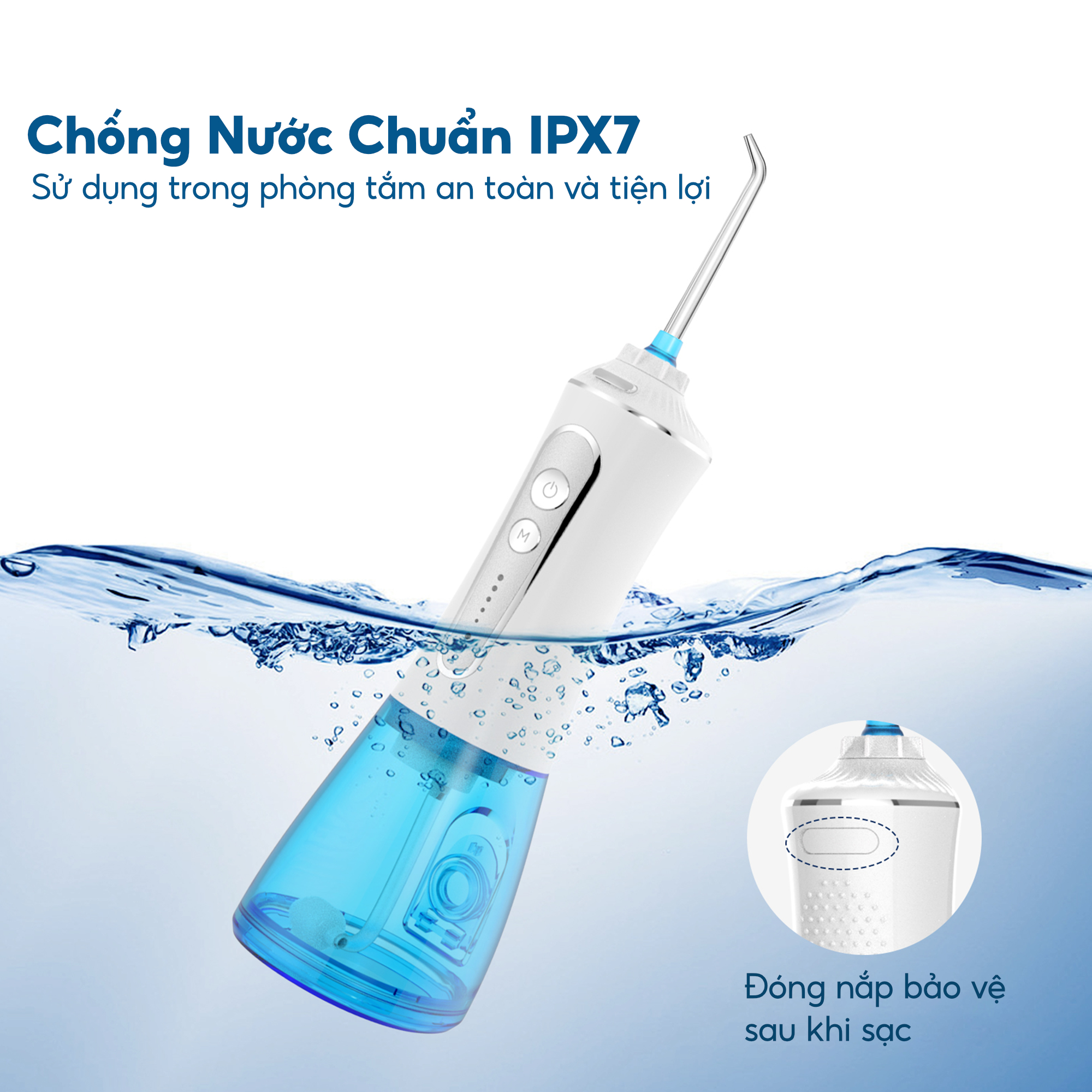 - Nước phun 1400 lần 1 phút với tia nước siêu âm, dễ dàng làm sạch mảng bám ở các kẽ răng