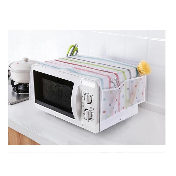 Áo trùm lò vi sóng. Áo phủ lò vi sóng bao trùm được toàn bộ lò vi sóng, phía bên hông còn có ngăn để đựng các dụng cụ nhà bếp gọn gàng, giúp bạn