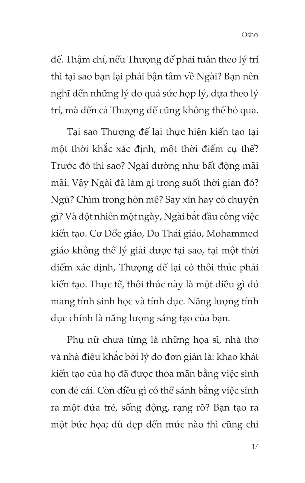 Tất cả các cuốn sách của Osho đều được tạo ra từ những cuộc nói chuyện rộng rãi của ông. Khi chia sẻ những câu chuyện từ cuộc sống của chính mình, mang đến những hiểu biết mới về những câu chuyện ngụ ngôn cũ và thách thức người nghe kiểm tra niềm tin có ý thức và vô thức của chính họ, Osho bắt đầu tạo ra một "câu chuyện" mới và chân thực hơn về những gì con người chúng ta đang làm trên hành tinh này, và tại sao chúng ta ở đây.