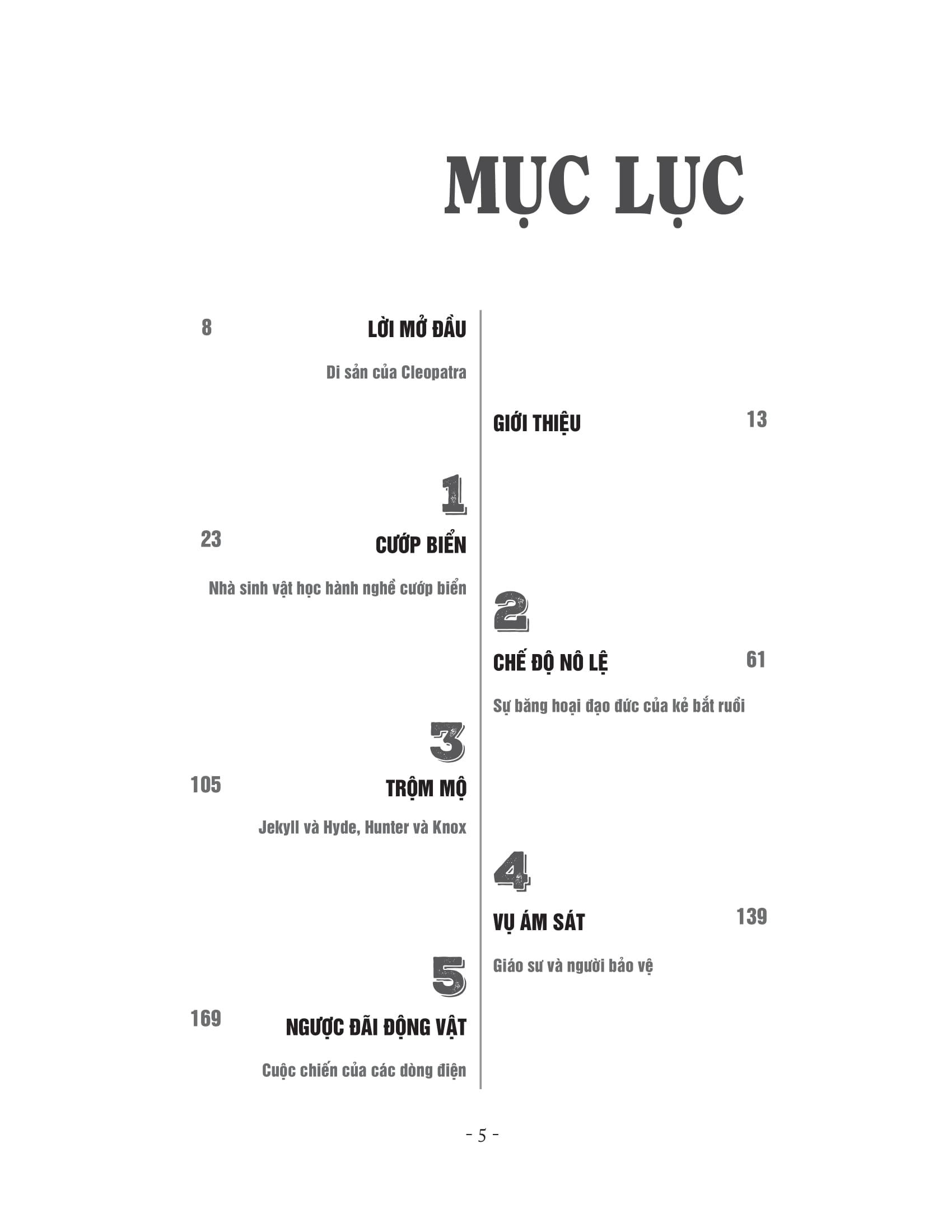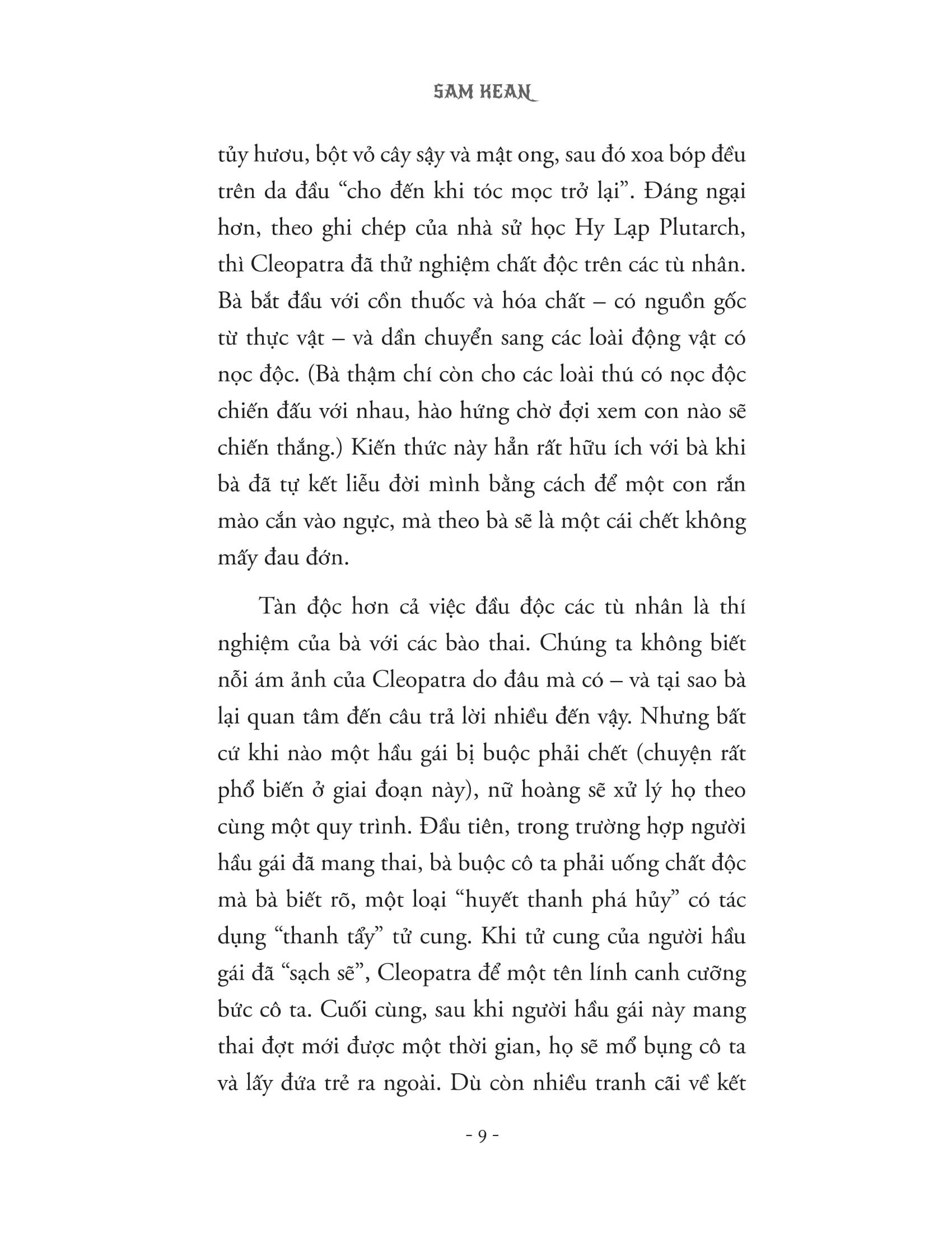 Trong cuốn sách này, tác giả Sam Kean sẽ dẫn lối người đọc một cách thành thạo hệt như một hướng dẫn viên du lịch lâu năm trải qua chuyến hành trình suốt hai nghìn năm lịch sử, bắt đầu từ những hành động đen tối của Cleopatra ở Ai Cập cổ đại.