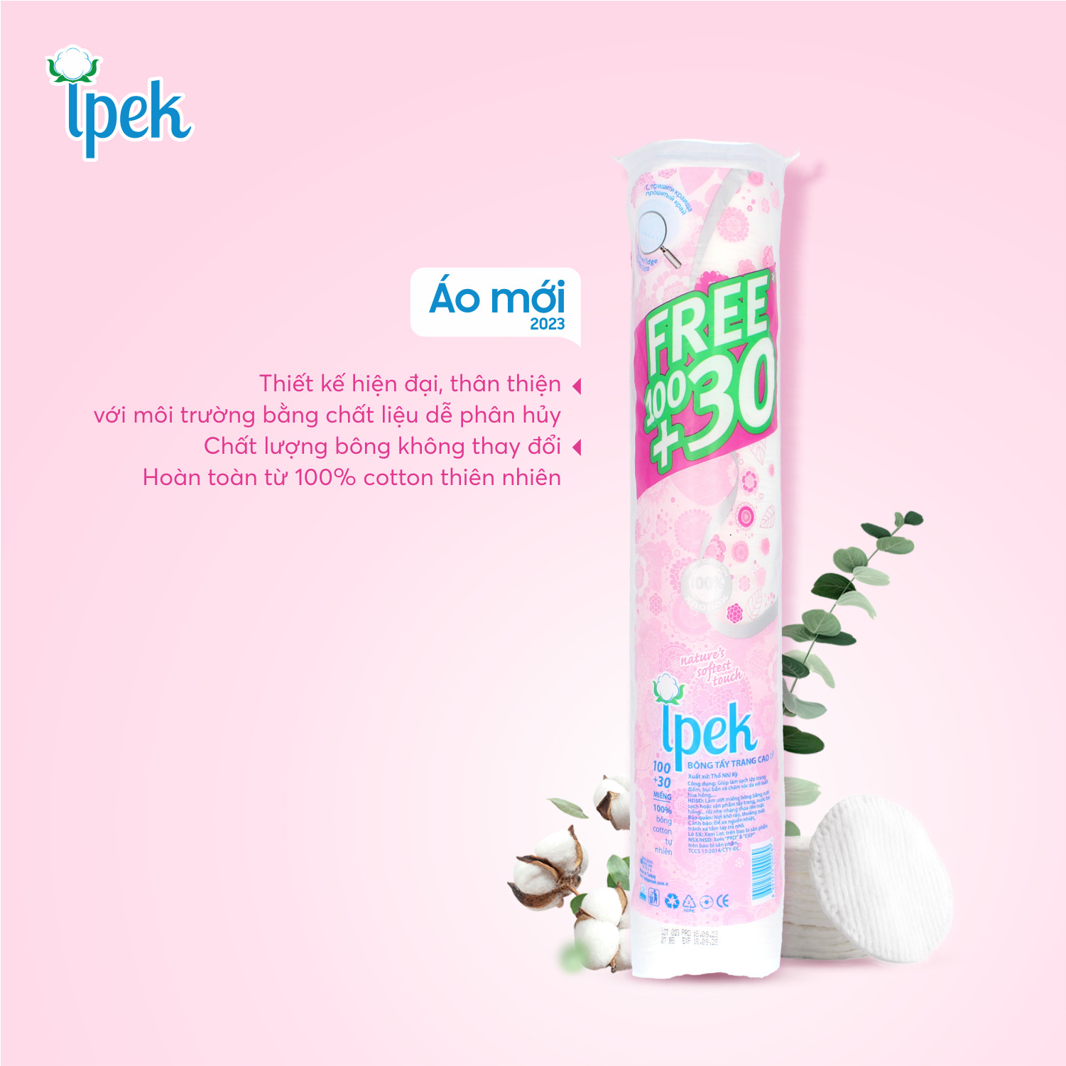 - Combo Bông Tẩy Trang Ipek 130 Miếng (Thổ Nhĩ Kỳ) thành phần 100% bông cotton là bông tẩy trang hữu cơ được sản xuất bởi công ty Ipek Idrofil Pamuk công ty hàng đầu