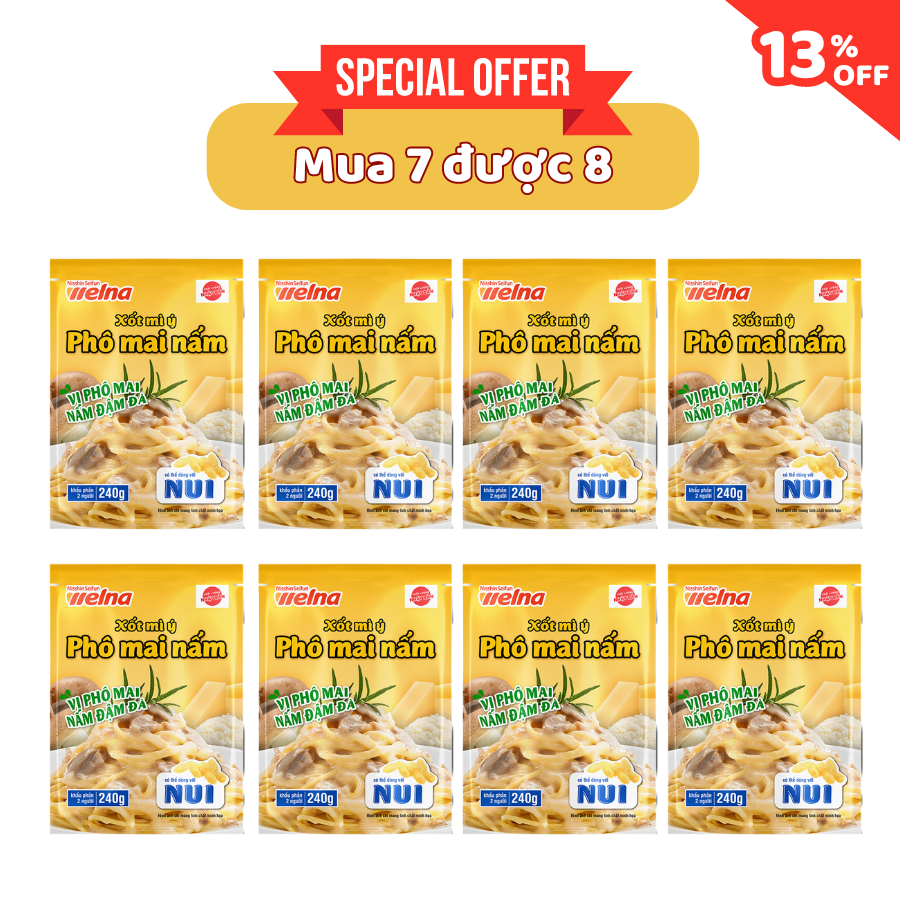 Combo 7 Gói Xốt Hương Vị Phô Mai Nấm - Nisshin Seifun Welna Shop (TẶNG 1 GÓI) MÔ TẢ SẢN PHẨM: Xốt mì Ý Nisshin là một sản phẩm tiện lợi cho bữa ăn của