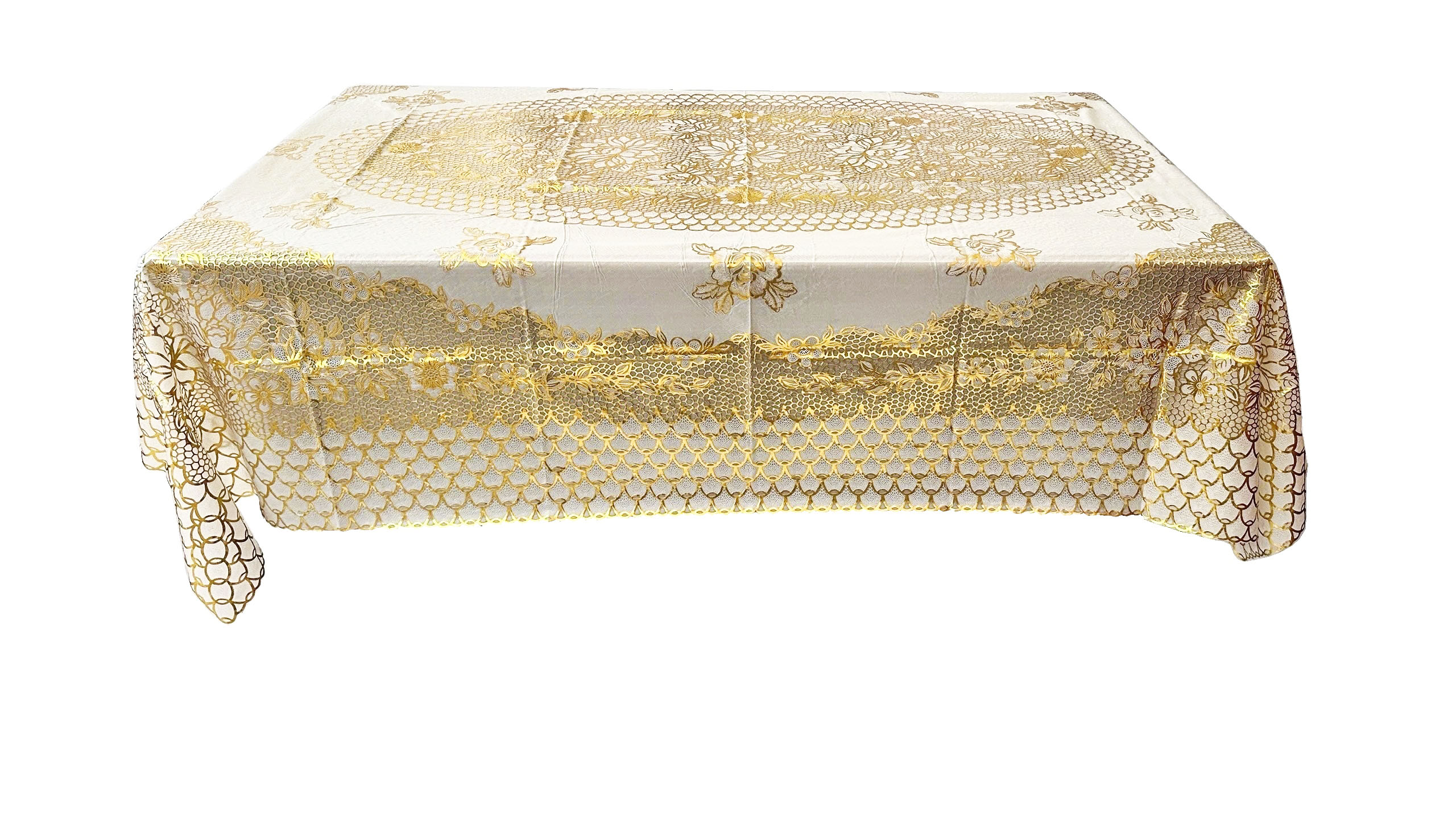 ✨[Tặng 1 lót phần ăn] Khăn Trải Bàn WLG.751 (137x180 cm), hoa văn phủ nhũ vàng, nhựa PVC dẻo, không thấm nước, dễ vệ sinh