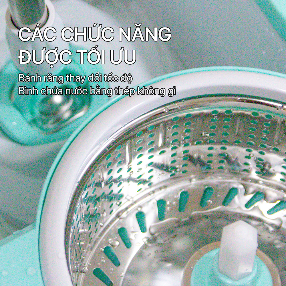 Cây lau MyJae 3 lần vắt 3 thanh gạt, phân ra ngăn khô và ngăn giặt 2 van xả nước, vệ sinh dễ dàng Thùng nhỏ gọn, cất giữ dễ dàng Cây lau MyJae 3