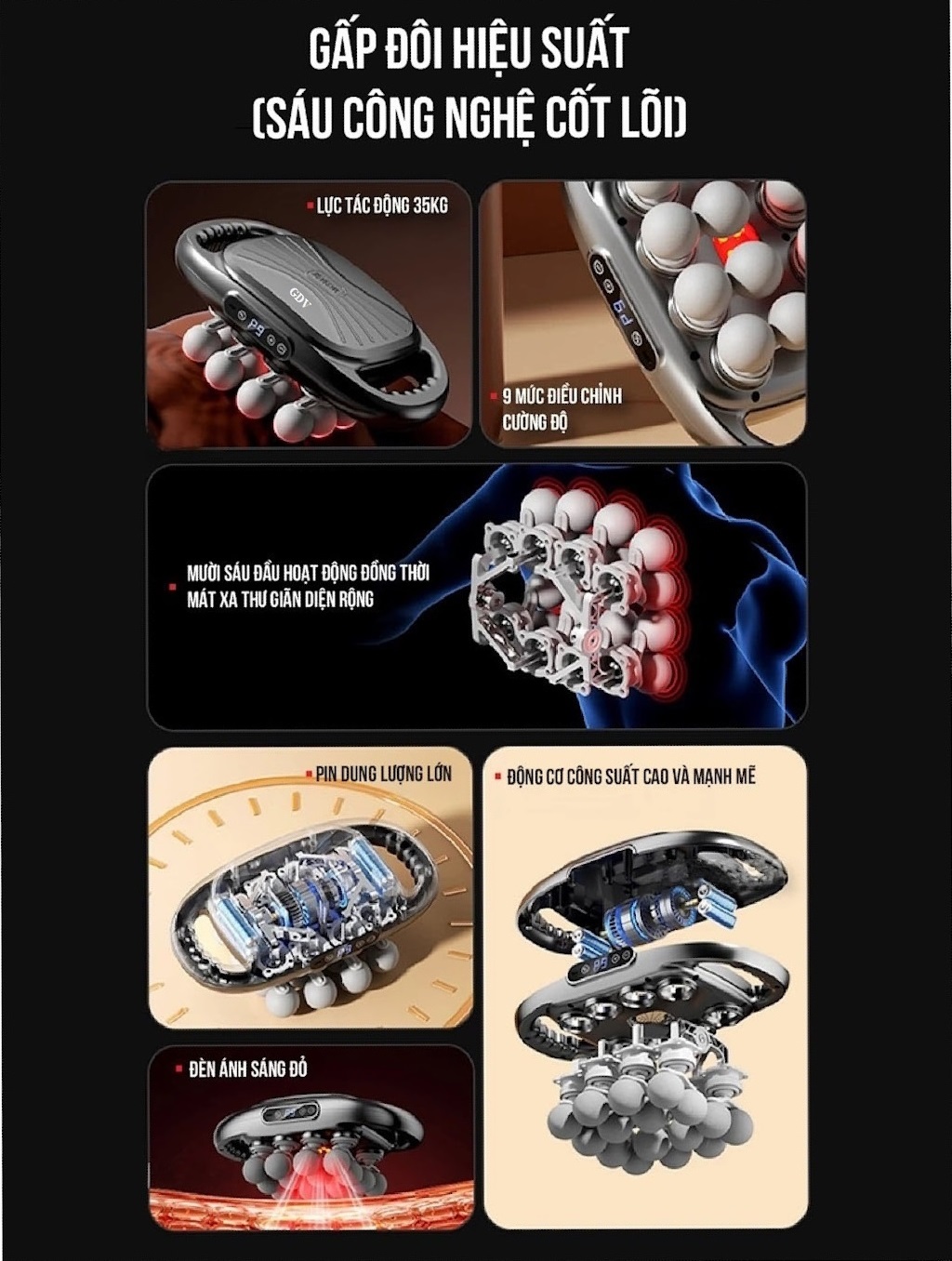 1.THÔNG TIN SẢN PHẨM: - Tên sản phẩm: Máy massage cầm tay GDV -16 đầu - Công dụng: Massage toàn thân Lưng, Chân, Tay, Vai, Cổ - Chất liệu: Nhựa ABS - Điện áp định