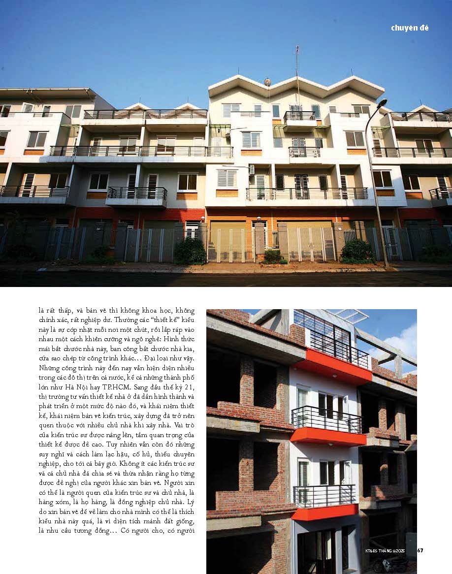 Khi kho dữ liệu bản vẽ thiết kế ngày càng lớn nhờ xu hướng, nhu cầu của xã hội thì thị trường xuất hiện một số dơn vị chuyên khai thác những bản vẽ “dã qua sử dụng” này dể cho, dể bán hoặc dể cải tiến, chỉnh sửa rồi cung cấp cho khách. Khoan bàn dến khía cạnh pháp lý (tính hợp pháp, quyền sở hữu trí tuệ, không gian làm nghề lành mạnh...) với chủ nhà cho nhu cầu, việc xin hay mua những bản vẽ dã qua sử dụng này có nhiều cái lợi về kinh tế, về thời gian... nhưng cái hại cũng không ít. Để có thông tin cụ thể hơn, dộc giả có thể tham khảo bài viết trong số báo tháng này về chủ dề nên hay không nên mua bản vẽ thiết kế có sẵn. Trân trọng,