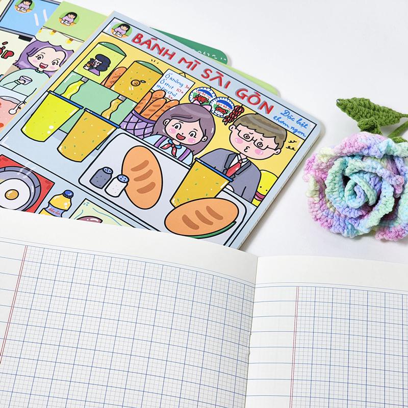 Quyển tập có đường kẻ ô ly rõ ràng, đều đặn giúp các em học sinh viết chữ đẹp hơn, nắn nót hơn.