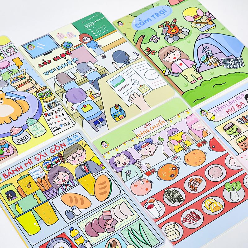 Bìa vở trang trí hình ảnh dễ thương, màu sắc nổi bật, tạo cảm hứng cho các em trong quá trình học tập.