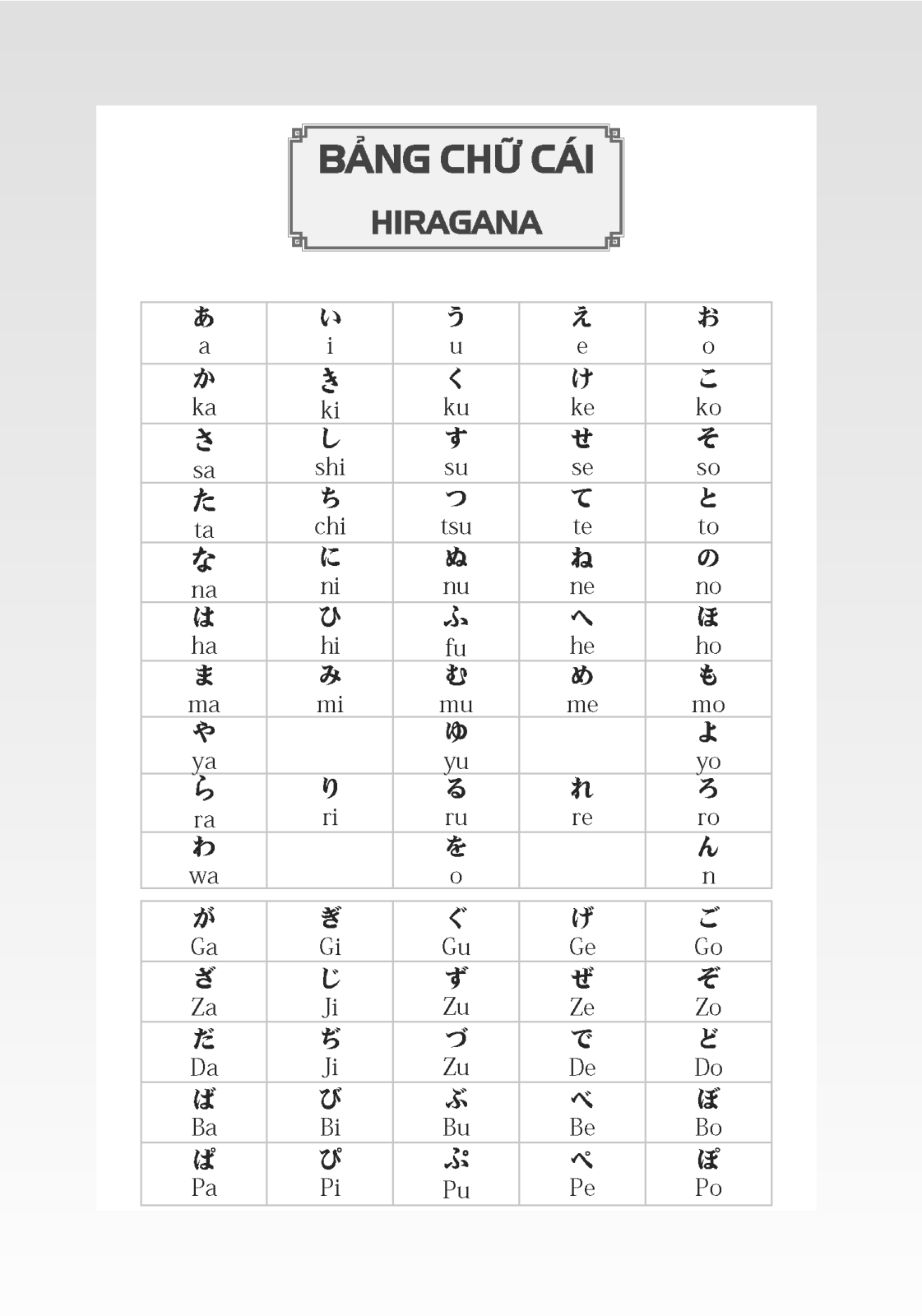 Đây là cách thông dụng nhất mà hầu hết các bạn mới học thường sử dụng để học bảng chữ cái tiếng Nhật.