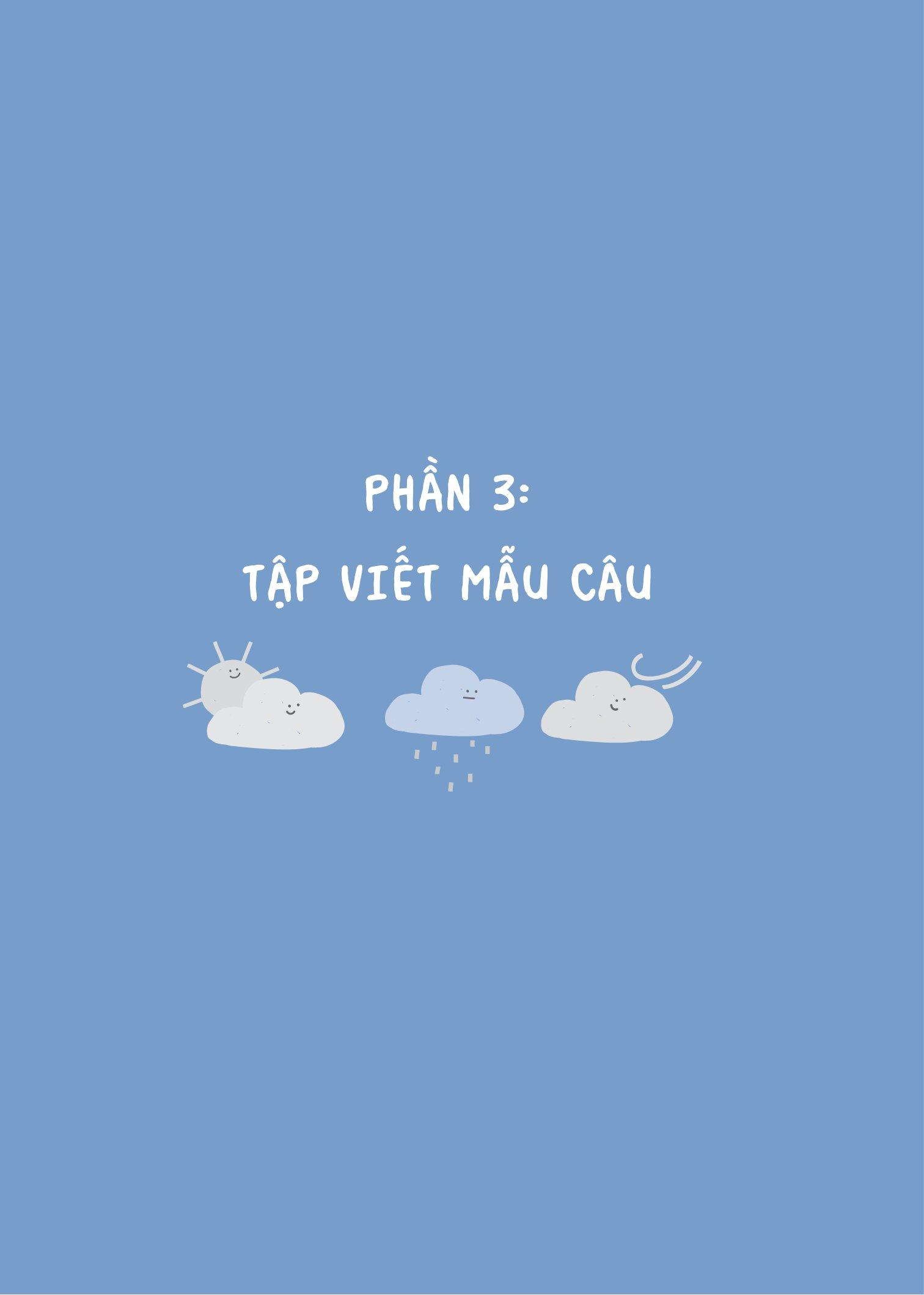 Phần 3: Tập viết mẫu câu dựa theo nội dung các bài học kiến thức tiếng Nhật cần thiết và phổ biến nhất hiện nay. Trong đó mỗi bài học đều có sự liên quan, tiếp nối, việc học sẽ trở nên hiệu quả và dễ dàng hơn.