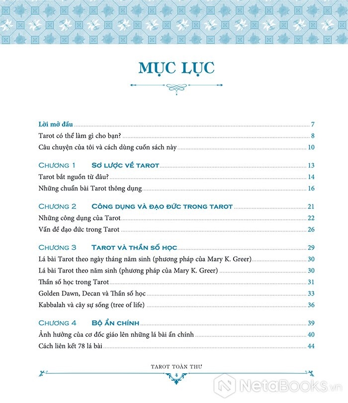 Hơn bao giờ hết, con người ngày nay chịu ảnh hưởng rất lớn bởi những tác động từ bên ngoài − những thứ mang lại cảm xúc tiêu cực − những tác động đến từ gia đình, bạn bè, mạng xã hội, cả những áp lực mà bạn đặt ra cho bản thân mình. Cuộc sống có vẻ quá đỗi mỏi mệt, nhưng may thay, với Tarot, bạn có thể gia tăng sự kết nối với những chỉ dẫn đến từ bên trong. Mối liên kết mà bạn thiết lập với các trải bài sẽ cho phép khơi dậy và phát triển khả năng trực giác vốn nằm sẵn trong mỗi con người, giúp bạn đưa ra những quyết định đúng đắn và là kim chỉ nam cho cuộc sống vốn có nhiều những nỗi hoang mang. Tarot mang hơi hướng tâm linh nhưng không phải là tôn giáo, nó đem lại sự trợ giúp cho bất cứ ai và bất kỳ người nào tìm kiếm nó. “Khai mở Tarot” là cuốn sách giúp bạn có thể luận giải bài Tarot một cách dễ dàng và thông suốt. Điều khiến nó trở nên đặc biệt hơn những cuốn sách nhập môn Tarot khác là nó bao gồm những bài tập được tác giả đặc biệt thiết kế để nuôi dưỡng và phát triển trực giác cũng như mối quan hệ của bạn với Tarot. Giống như việc rèn luyện cơ bắp tại phòng tập thể hình, trực giác của bạn sẽ càng được phát triển và củng cố khi bạn thực hành các bài tập đều đặn, thường xuyên. Những hình minh họa sử dụng trong cuốn sách này được lấy từ bộ bài phổ biến Rider Waite Smith − cũng là bộ bài đầu tiên tôi dùng khi bắt đầu hành trình đến với Tarot, nhưng bạn có thể chọn bất kỳ bộ bài nào khác mà bạn thích. Chúng ta sẽ tập trung vào những nét nghĩa phổ quát của mỗi lá bài, và bạn cũng có thể dùng trực giác để phát triển cách hiểu của riêng mình về mỗi lá bài thay vì phải cố gắng ghi nhớ ý nghĩa của chúng. Luận giải Tarot là sự kết hợp giữa việc hiểu những lá bài, lắng nghe trái tim và tin tưởng vào trực giác. Sự kết hợp này cho phép những lá bài truyền tải những ý tưởng và thông điệp