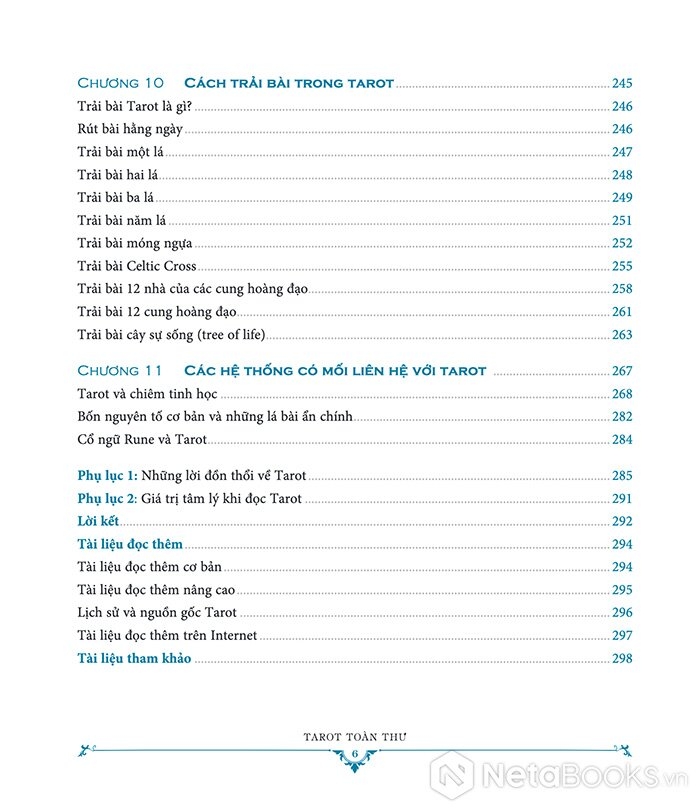 Cuối cùng, Tarot toàn thư đã được cố gắng hết sức để tạo ra một bản hướng dẫn hữu ích và toàn diện về Tarot cho thế kỷ 21, hy vọng rằng các bạn – người đọc – sẽ yêu thích và thấy cuốn sách đáp ứng được nguyện vọng tìm hiểu về Tarot của mình.