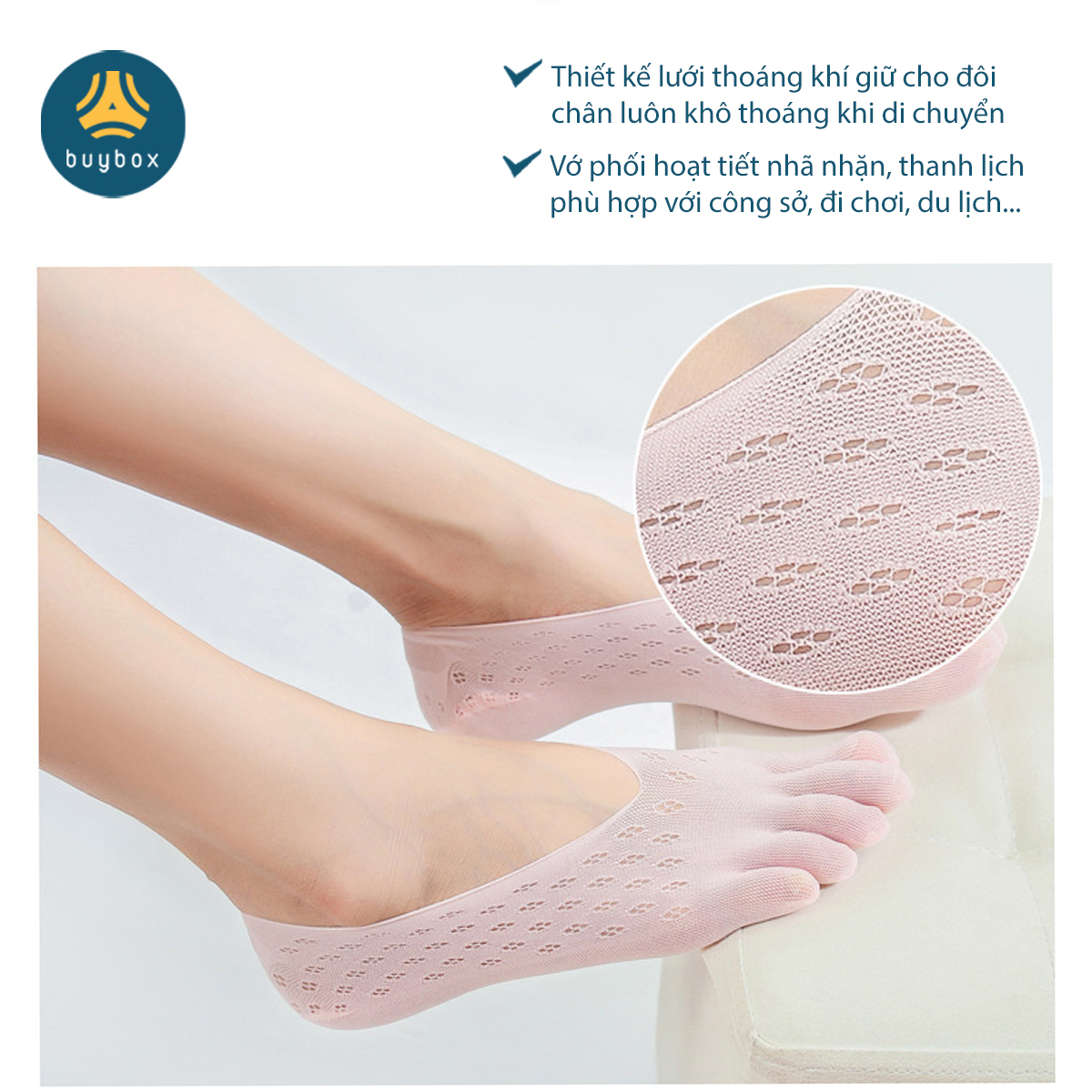 Giặt rất mau khô, thoáng mát Giúp nâng niu đôi bàn chân Vớ không quá dày nhưng rất thấm hút mồ hôi và kháng khuẩn