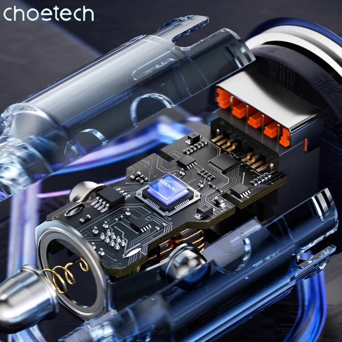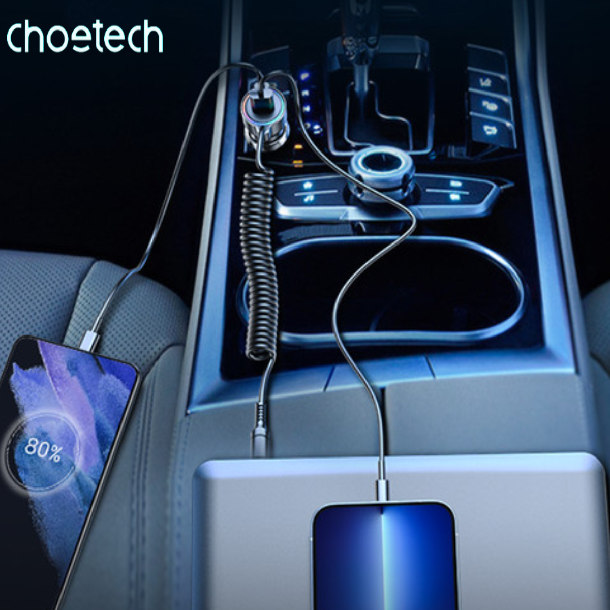 ✨Tẩu Choetech TC0030 sạc nhanh ô tô 65W tích hợp thêm dây cáp sạc lò xo Type C (Hàng chính hãng)