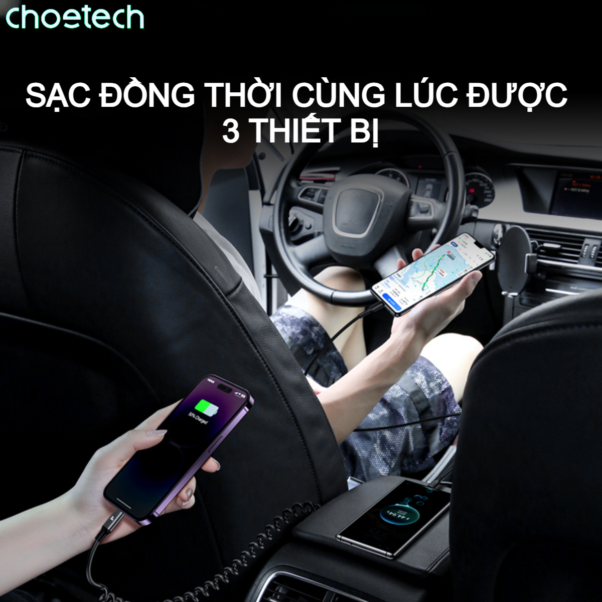 - Trọng lượng: 49.52g Giới thiệu sản phẩm Tẩu sạc nhanh ô tô 65W Choetech TC0030 tích hợp thêm dây cáp sạc lò xo Type C (Hàng chính hãng) – Tẩu sạc nhanh ô tô 65W Choetech TC0030 là phụ kiện sạc tuyệt vời cho xe hơi của bạn, mang đến khả năng sạc nhanh, tiện lợi và đa năng. Với công nghệ sạc nhanh PD (Power Delivery) kết hợp với cổng USB và cáp sạc lò xo Type C tích hợp, sản phẩm này đáp ứng đầy đủ nhu cầu sạc cho mọi thiết bị, từ smart-phone, máy tính bảng đến laptop, ngay cả khi bạn đang di chuyển. Tính năng nổi bật Tẩu sạc nhanh ô tô 65W Choetech TC0030 : – hỗ trợ công suất sạc tối đa 65W, lý tưởng cho việc sạc nhanh các thiết bị hiện đại như Mac-Book, i-Pad Pro, hay điện thoại thông minh cao cấp chỉ trong thời gian ngắn. Bạn có thể sạc đầy thiết bị mà không lo tốn thời gian. – Với 2 cổng sạc gồm PD và USB A, bạn có thể sạc đồng thời hai thiết bị. Cổng PD đảm bảo tốc độ sạc nhanh cho các thiết bị công suất lớn, trong khi cổng USB A có thể sạc cho các thiết bị như điện thoại, máy tính bảng, tai nghe và các phụ kiện khác. – được tích hợp sẵn cáp sạc lò xo Type-C, không chỉ giúp tiết kiệm không gian mà còn dễ dàng kéo dài và thu gọn tùy theo nhu cầu sử dụng. Cáp lò xo này rất bền và linh hoạt, đảm bảo độ bền lâu dài dù sử dụng nhiều lần. – Với thiết kế nhỏ gọn nhưng mạnh mẽ, dễ dàng cắm vào bất kỳ ổ sạc nào trên ô tô mà không chiếm nhiều diện tích. Vỏ ngoài được làm từ chất liệu cao cấp, mang đến vẻ ngoài sang trọng và cảm giác cầm nắm chắc chắn. – còn được trang bị các tính năng bảo vệ thông minh như chống quá tải, quá dòng, quá nhiệt và ngắn mạch. Điều này giúp bảo vệ thiết bị của bạn khỏi các tình trạng hư hỏng trong quá trình sạc, đảm bảo an toàn cho cả người dùng và thiết bị. – Tẩu sạc nhanh ô tô công suất cao 65W Choetech TC0030 là sự lựa chọn hoàn hảo cho những ai thường xuyên di chuyển, đặc biệt là những người có nhu cầu sạc nhanh nhiều thiết bị cùng lúc. Dù bạn đang đi du lịch, công tác hay chỉ cần sạc thiết bị trên đường đi làm, sản phẩm này giúp bạn luôn giữ kết nối mà không bị gián đoạn. – Lý do nên chọn Tẩu Sạc :
