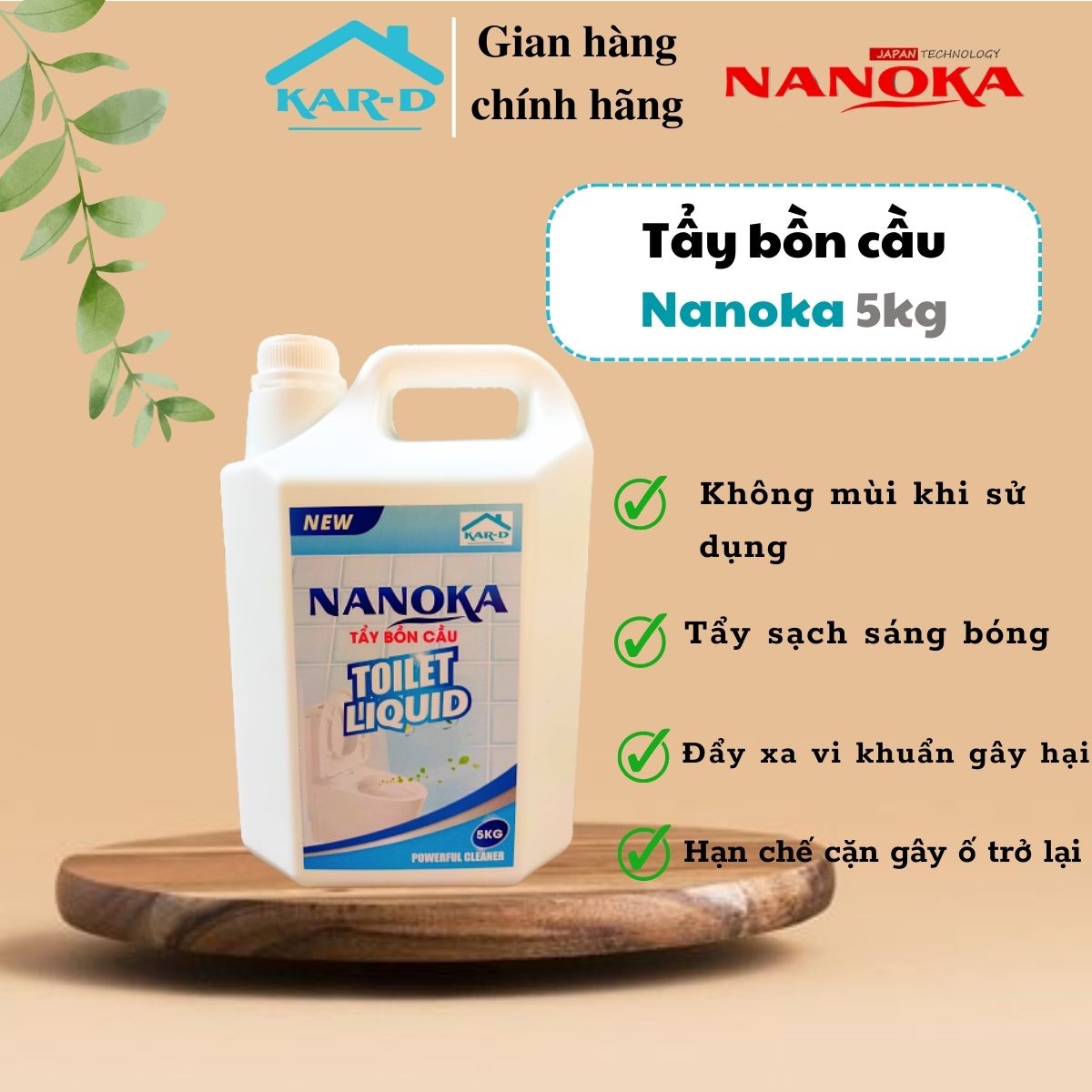 Tẩy bồn cầu Nanoka với tính năng phan hủy nhanh vết ố vàng, cặn bám chắc lâu ngày tại các mép, bề mặt gạch nhà vệ sinh, những chỗ khuất của bồn cầu, đánh bay dễ dàng và nhanh chóng, trả lại vẻ sáng sạch an toàn cho toilet nhà bạn, đẩy xa vi khuẩn gây hại, hạn chế cặn gây ố trở lại, giảm thiểu số lần phải cọ rửa, lau chùi vất vả, giúp tiết kiệm tiền và thời gian đáng kể cho bạn. Tên sản phẩm: Tẩy bồn cầu Nanoka Thương hiệu: Nanoka Thành phần: Nước, NaOH, country, and other components Hướng dẫn sử dụng: - Sử dụng kính, khẩu trang, găng tay cao su khi tẩy rửa và sử dụng sản phẩm. - Đổ hoặc xịt trực tiếp Tẩy bồn cầu Nanoka vào những chỗ ố vàng, cặn bẩn. - Sử dụng công cụ tẩy rửa, chà cọ bề mặt và những chỗ cong khuất khó tiếp cận. Đánh bay và dội sạch sẽ bằng nước. - Nên sử dụng thường xuyên. Hạn chế sử dụng nhà vệ sinh trong lúc đang tẩy rửa, rửa sạch sẽ các vật dụng trước khi dùng. Lưu ý: - Tránh xa tầm tay trẻ em. - Không được uống. - Tránh tiếp xúc trực tiếp với mắt. TCCS: TCCS 312022/NANOKA Dung tích: 5kg Sản xuất tại Việt Nam Website: Kar-d.com - Địa chỉ: 26 TT9 Đường Foresa8 - Khu đô thị