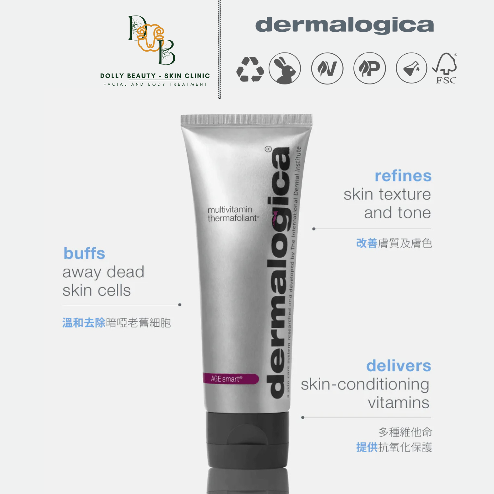Nhẹ nhàng đánh bóng các tế bào mờ xỉn , để lộ làn da tươi mới và mịn màng hơn ngay tức thì. Công nghệ tạo nhiệt họat hóa ngay khi tiếp xúc với nước nhằm đẩy mạnh cách thành phần đi sâu hơn vào trong làn da. Cung cấp sự bảo vệ chống oxy hóa đồng thời giảm sự hình thành AGEs. Ngăn chặn MMPS làm suy kiệt collagen đồng thời nuôi dưỡng làn da. Làn da trông và cảm nhận thấy cải thiện cũng như mềm mịn hơn.