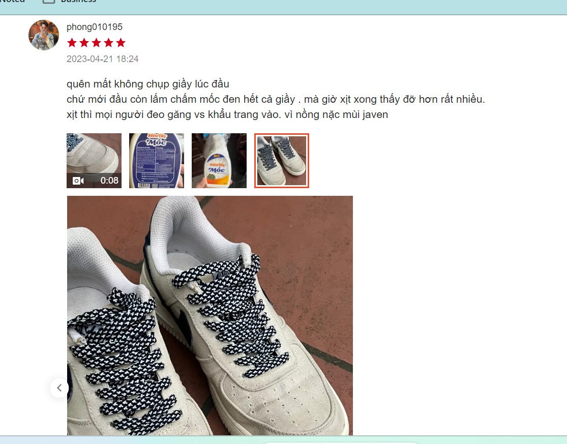 B2: + Đối với quần áo màu khuyến nghị nên pha loãng tẩy với nước, sau đó xịt lên vùng bị mốc hoặc ngâm trực tiếp vùng bị mốc theo dõi xả liền vì chất tẩy mạnh ạ.