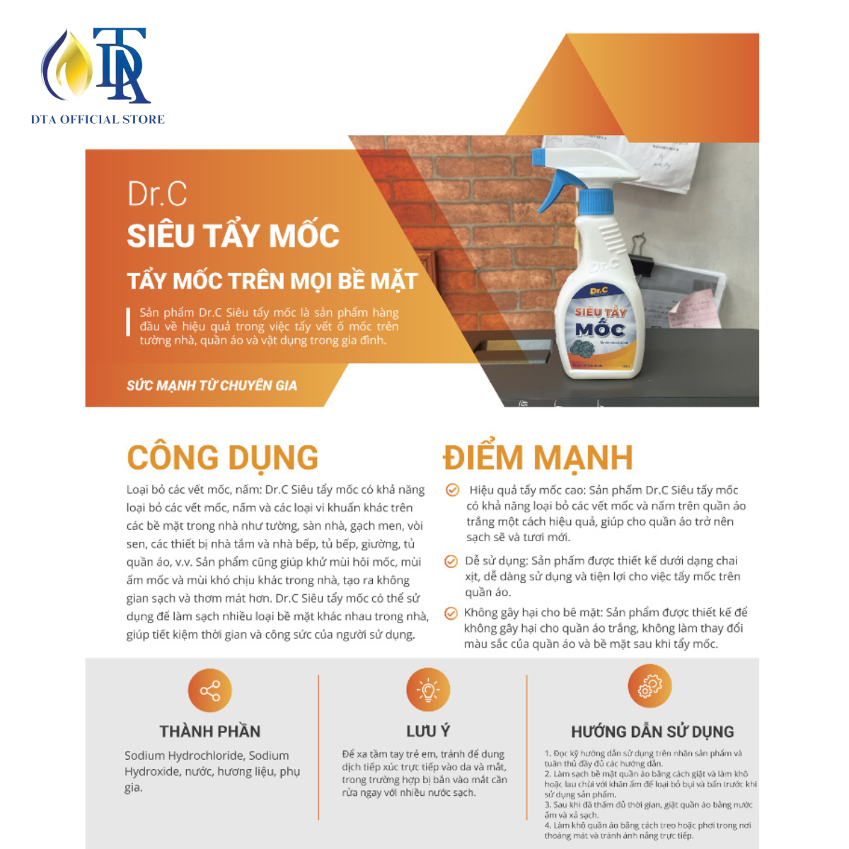 Mua tại TiktokCÔNG DỤNG: Tẩy Mốc Quần Áo,Tẩy Mốc Tường,Tẩy Mốc Gioăng Cao Su Máy Giặt,Tẩy Mốc Nệm Gối Siêu Sạch,Tẩy Khe Cửa Ố Đen Dr.C 300ml