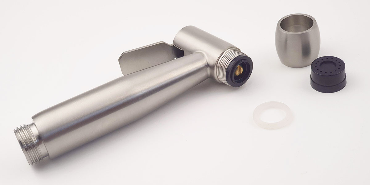 Tay xịt được sản xuất với chất liệu Inox SUS 304, không han rỉ, không dính kết vết bẩn. Vật liệu đạt tiêu chuẩn chất lượng Châu Âu, không bong tróc lớp xi mạ theo thời gian.