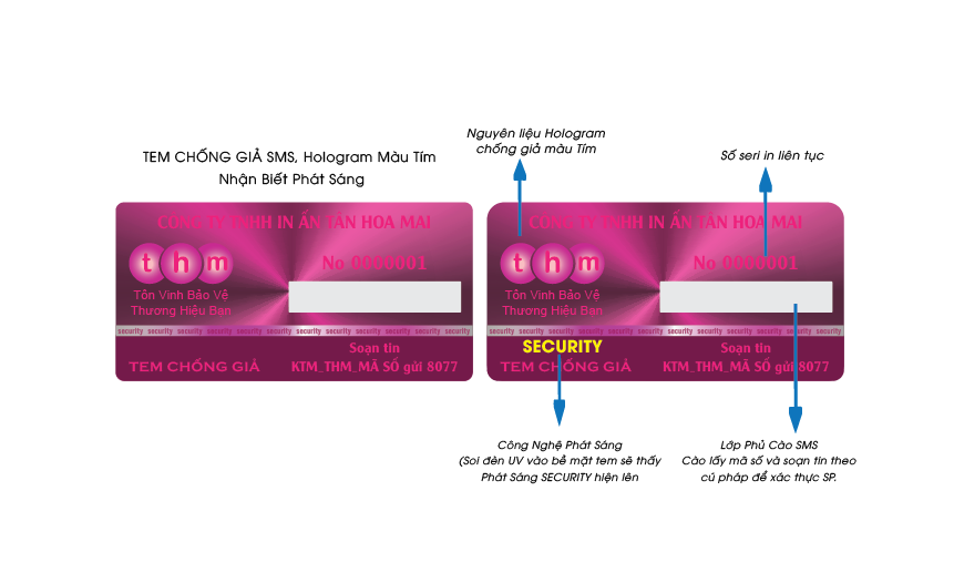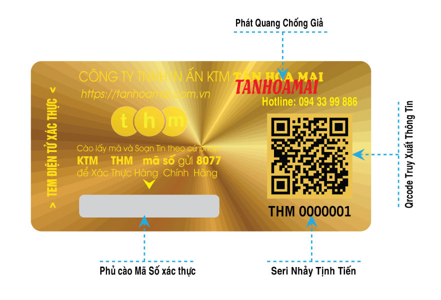 • Tem hologram được sản xuất với công nghệ in laser hiện đại.