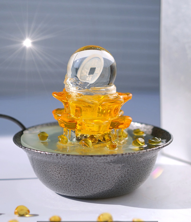 Thác nước phong thủy Ngọc Cát Tam Tài là một sản phẩm trang trí phòng thủ công độc đáo, mang lại không gian nghệ thuật cho ngôi nhà của bạn. Thiết kế Phong Thủy: Mạch nước chảy phun từ dưới lên đài hoa sen, truyền đi vẻ đẹp của ngọc thủy tinh khắc hoa văn đồng xu bên trong. Hoạt Động Linh Hoạt: Khi hoạt động, viên ngọc trong sản phẩm xoay tròn tạo ra hiệu ứng sinh dong và hấp dẫn. Cải thiện không gian làm việc của bạn với sự may mắn và tích cực từ thác nước này, mang lại cảm giác bình yên và sự hưng thành cho kinh doanh của bạn. Vật Liệu Chất Lượng: Được làm từ chất liệu thủy tinh cao cấp giúp sản phẩm bền bỉ và sang trọng. Xuất xứ Chính Hãng: Sản xuất tại Đài Loan - cam kết chất lượng hàng hóa an toàn cho sức khỏe và môi trường. Kích thước : Chiều ngang 17cm x Chiều rộng 17 cm x cao 15cm Chất liệu : Thủy tinh + Nhựa Tặng kèm thỏi kim bảo mini Hướng Dẫn Lắp Ráp: Gắn trực tiếp máy bơm vào ống nước cao su (phần trên thác) , điều chỉnh lực nước bằng cách gạt qua lại trên máy bơm nước. Cho nước vào chậu gốm , cho máy bơm trực tiếp vào nước , điều chỉnh thác căn bằng phụ kiện,cắm điện máy hoạt động( Chú ý máy bơm phải nằm ngập trong nước). Máy tạo khói (nếu có) cho trực tiếp vào nước và cắm điện (chú ý luôn cho nước ngập máy), Quý khách mua máy tạo khói tại đây Sản phẩm này là tài sản cá nhân được bán bởi Nhà Bán Hàng Cá Nhân và không thuộc đối tượng phải chịu thuế GTGT. Do đó hoá đơn VAT không được cung cấp trong trường hợp này.