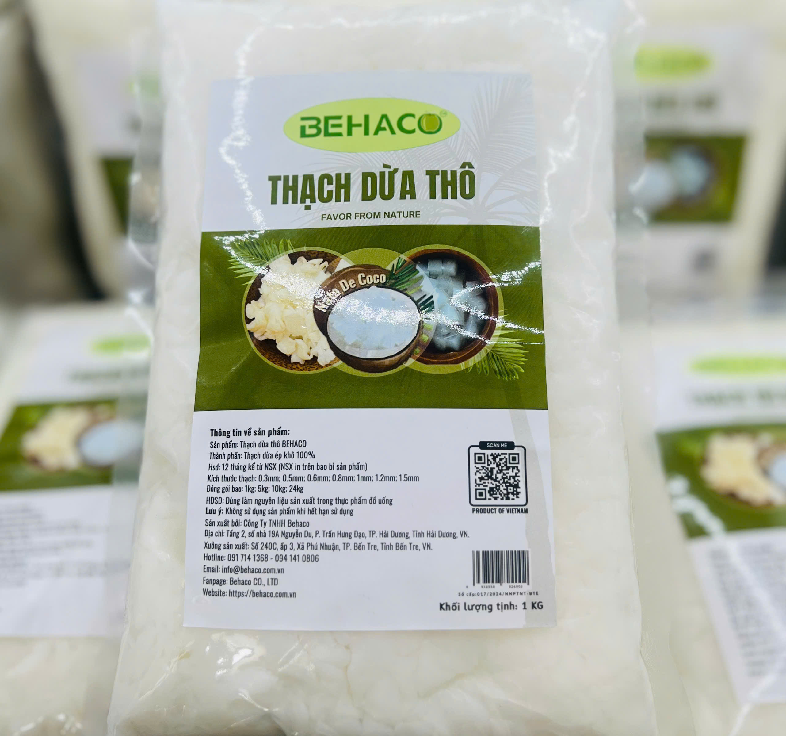 Mua tại TiktokTHẠCH DỪA ÉP KHÔ BEHACO - 10 LY Thạch dừa thô là lớp Hemicellulose, sản phẩm sinh khối đươc tạo thành bởi sự lên men của vi khuẩn Acetobacter xylinum trong môi trường nước dừa già bổ sung các chất dinh dưỡng cần thiết tốt cho sức khỏe. Thạch dừa thô được sản xuất tại Công Ty TNHH Behaco Bến Tre Việt Nam.