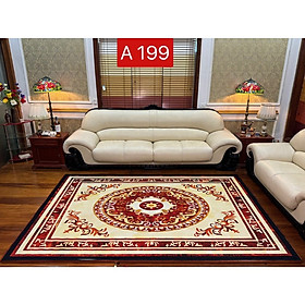 - Mặt dưới là lớp thảm chống trượt, với các hạt cao su được thiết kế hình bông hoa hồng đẹp mắt, tăng độ ma sát, bám dính xuống mặt sàn nhà. Trọng lượng: Size 1m6x2m3 nặng 3.8 - 4kg/chiếc Size 2mx3m nặng 5.8-6kg/chiếc Độ dày: