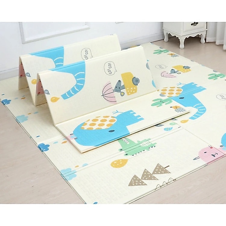 Thảm Xốp Gấp Gọn Chống Thấm, Thảm XPE 2 Mặt Phủ Silicon Chống Trơn, Chống Ngã, Cho Bé Tập Bò Kèm Túi