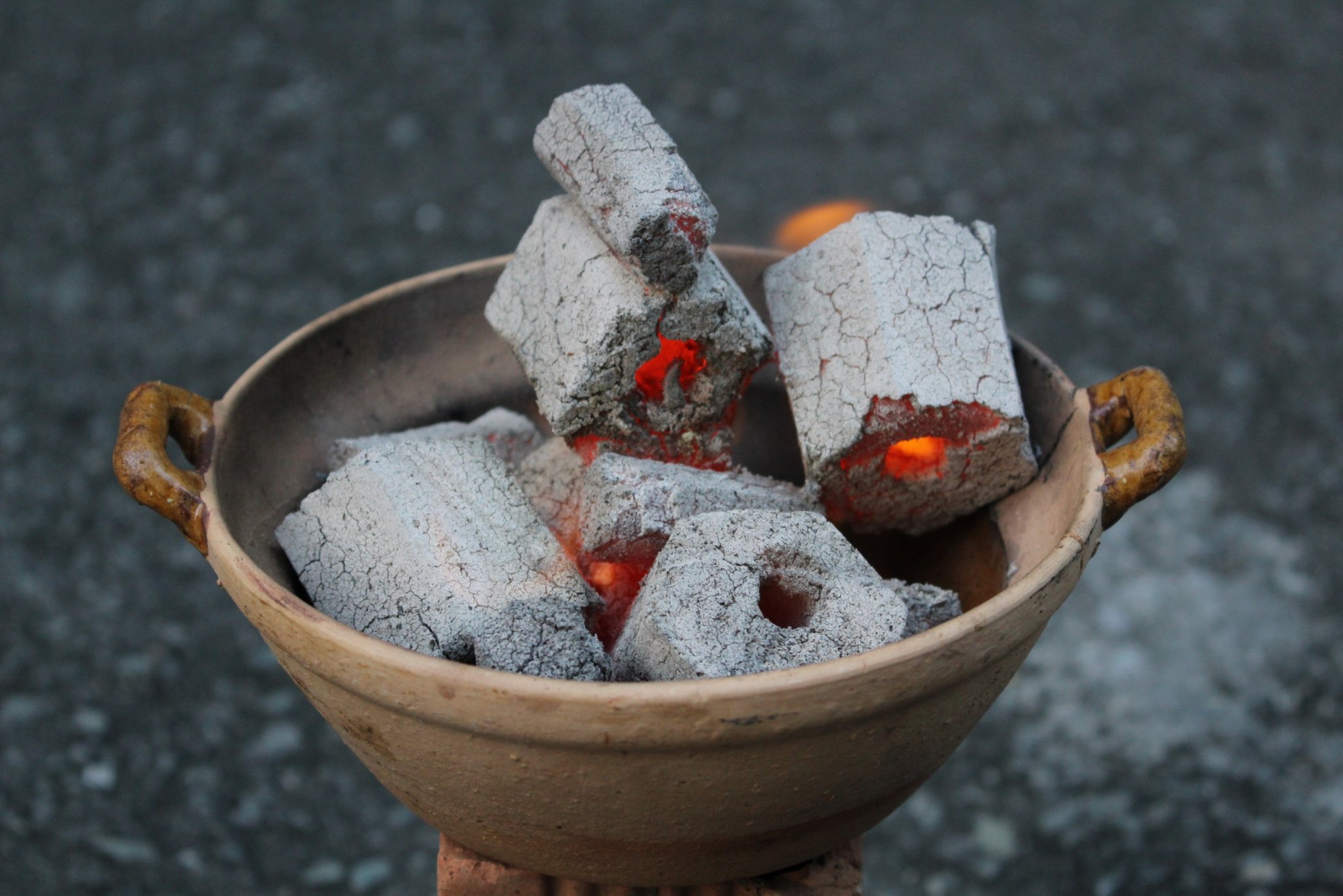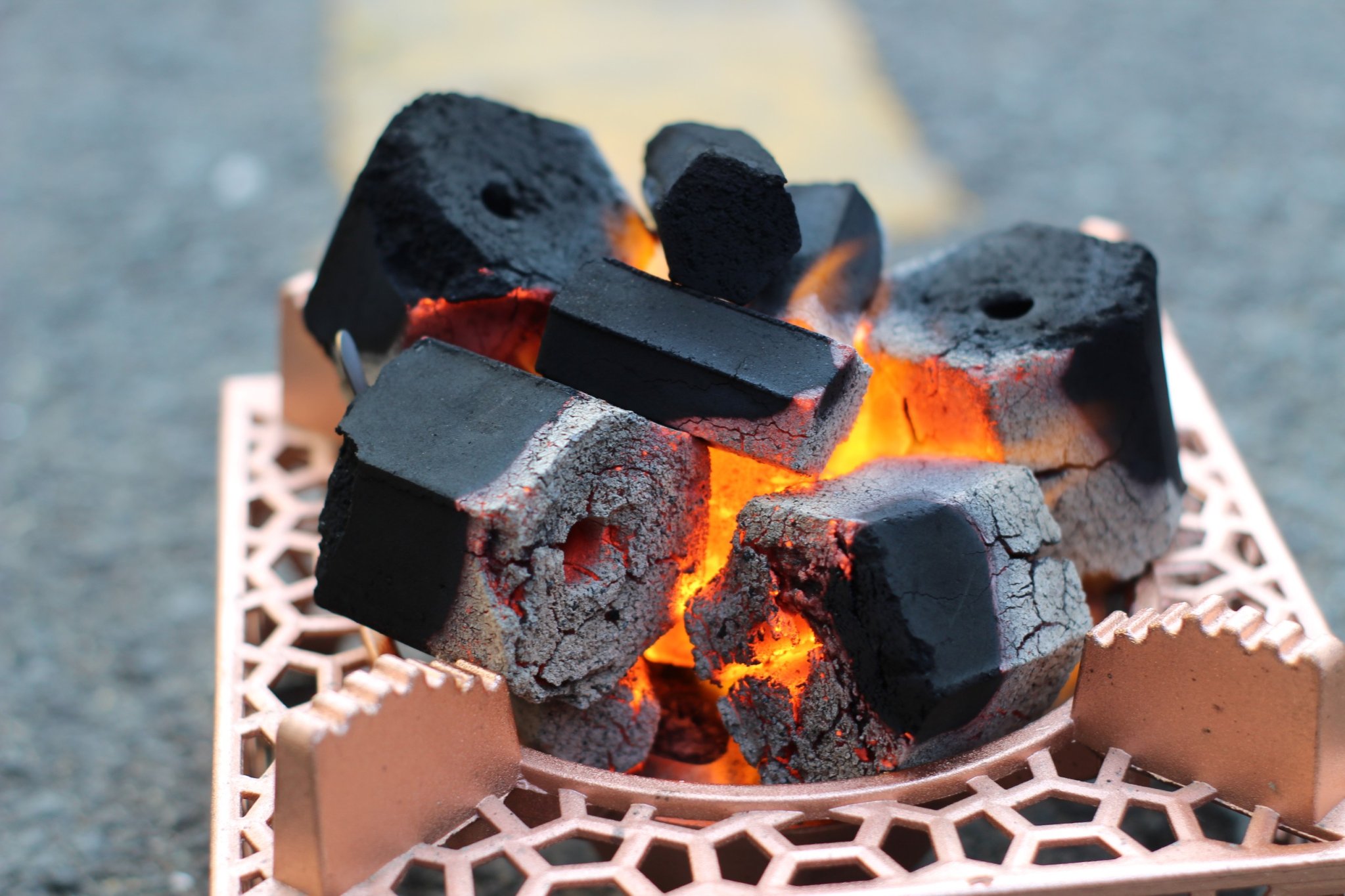 Chờ than cháy đều và chuyển sang màu hồng.