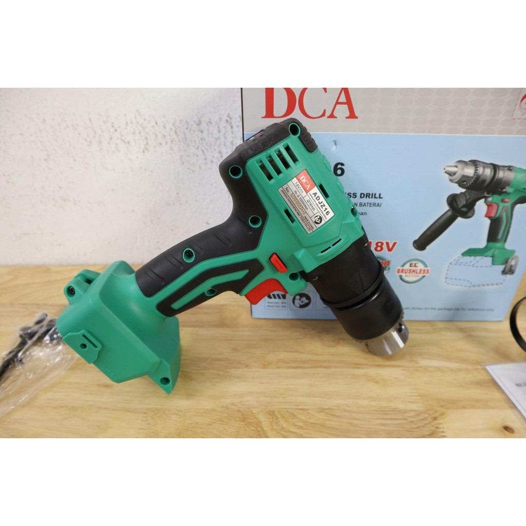 Thân máy khoan pin 18V DCA ADJZ16Z khi mua chưa bao gồm pin và sạc. Khi sử dụng, người dùng cần chú ý sự ăn khớp giữa các chi tiết máy nhằm đảm bảo an toàn lao động. Lưu ý vệ sinh thiết bị thường xuyên và bảo dưỡng máy định kỳ để gia tăng tuổi thọ của sản phẩm.