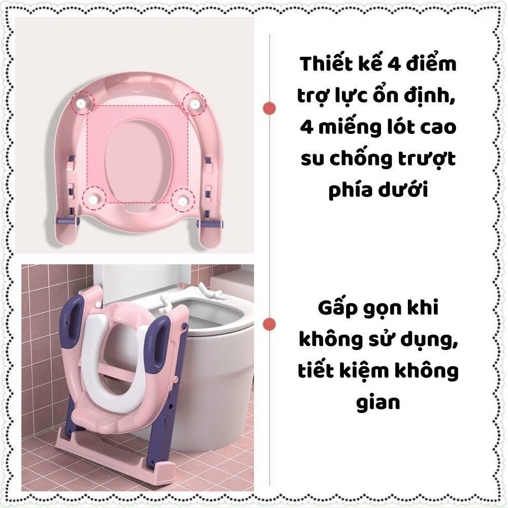 Ghế nắp bệ thu nhỏ kèm miếng lót ngồi bồn cầu toilet có thang cho bé