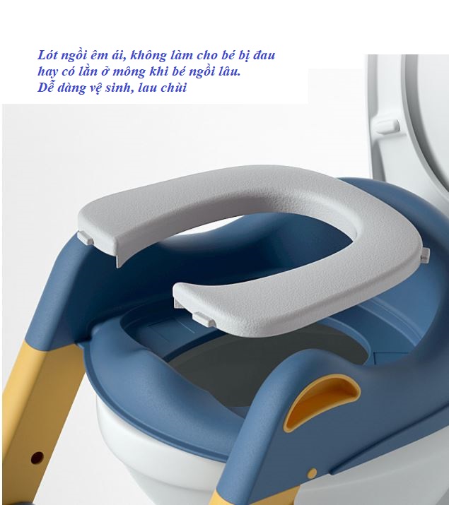 Bệ thu hẹp bồn cầu cho bé có thang cho bé. Rèn luyện cho bé thói quen cho bé tự làm những việc đơn giản sẽ giúp bé có nhận thức sớm hơn về cuộc