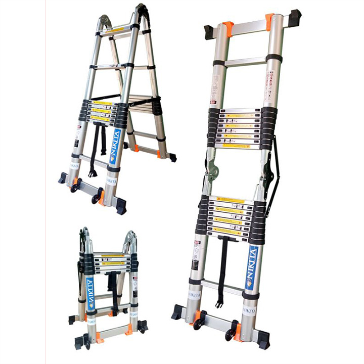 Thang nhôm rút đa năng Nikita với thiết kế nhỏ gọn, linh hoạt trong sử dụng, có độ bền chắc chắn, tải trọng cao, an toàn sử dụng cả khi duỗi thẳng. Thích hợp trong thi công ở những vị trí cao, hẹp hoặc dùng dễ dàng khi cần kê thang ở bậc tam cấp.