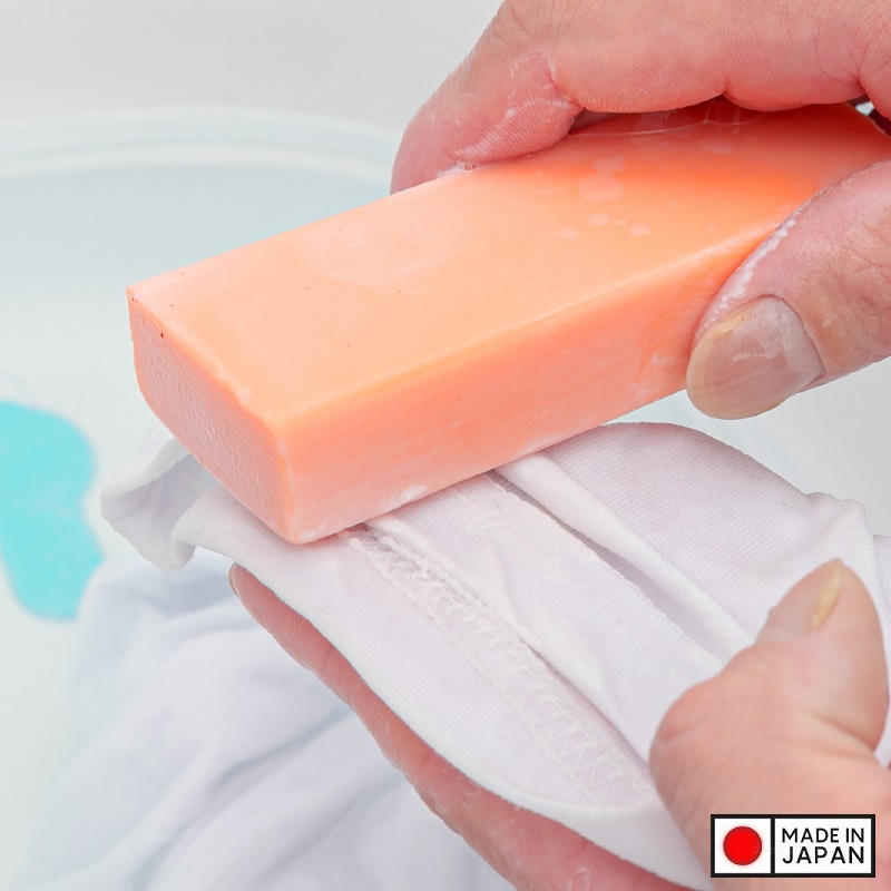 Chất hoạt động bề mặt, Surfactant hàm lượng xà phòng nguyên chất 78% natri axit béo nguyên chất, silicat, tinh dầu cam ■ Công dụng: ● Dùng để tẩy sạch các vết bẩn bám trên cổ áo, gấu áo ● Đặc biệt vết bẩn vùng cổ áo, nách… giúp cho quần áo trắng sạch tinh tươm. ● Thích hợp cho các loại sợi vải cotton, linen, sợi tổng hợp... ■ Ưu điểm: ● Giặt sạch nhanh chóng các vết bẩn cứng đầu trên cổ áo, vùng cánh tay hoặc cổ tay hiệu quả ■ Sản phẩm dạng thanh cứng nhỏ gọn, dễ dàng mang theo khi đi du lịch, dã ngoại để sử dụng thay các loại xà bông thông thường. ■ LƯU Ý: ● Với quần áo màu, vảo có họa tiết hoa văn dễ phai màu, nên thử trước ở những nơi khó thấy hoặc mặt trái của áo quần ■ Sản phẩm được nhập khẩu trực tiếp từ Nhật Bản ■ Sản xuất tại Nhật Bản | MADE IN JAPAN