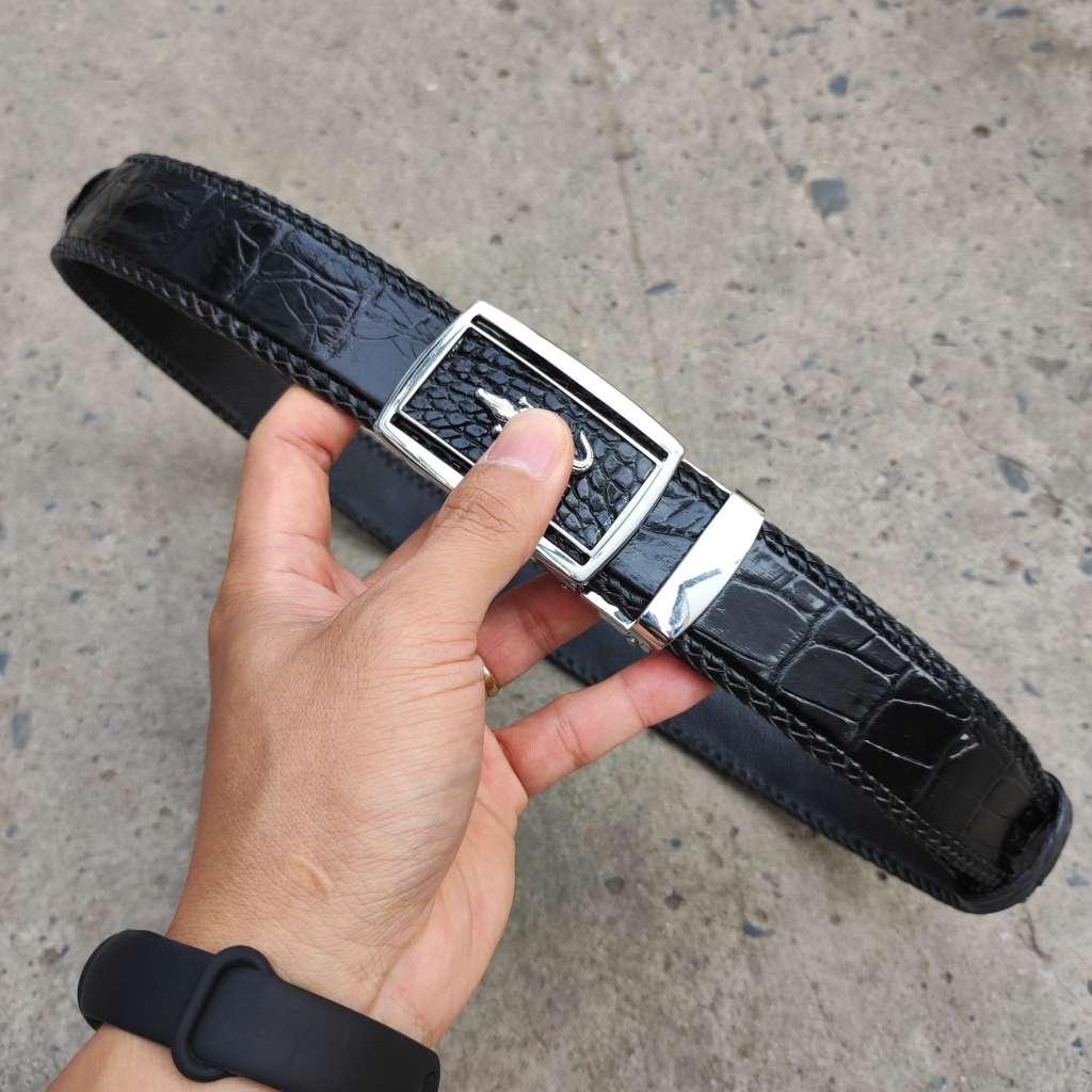 ✨Thắt lưng da cá sấu Đan Viền Thủ Công Rất Bền! (mặt bạc)
