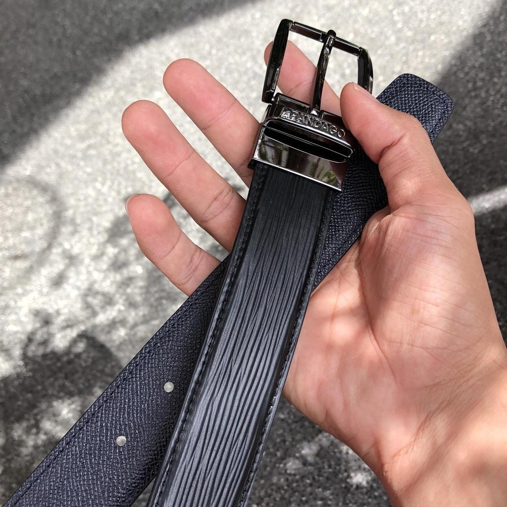 - Độ dài: Cũng như các loại phụ kiện khác, chọn một chiếc dây thắt lưng đúng size rất quan trọng vì đây chính là phụ kiện giúp quần áo vừa vặn với cơ thể hơn. Hãy đo đạc vòng bụng của mình thật kĩ lưỡng trước khi muốn mua dây nịch nam bạn nhé! <> THÔNG TIN SẢN PHẨM THẮT LƯNG NAM ️ Dây da 2 mặt EPI và Crossgrain có 2 màu: mặt Xanh Than - Đen và mặt Đen - Xanh Than ️ Dây da dài khoảng 120 cm; rộng 3,3 cm; độ dày 0,3 cm. ️ Đầu khóa xoay 360 độ sử dụng được cả 2 mặt thắt lưng.