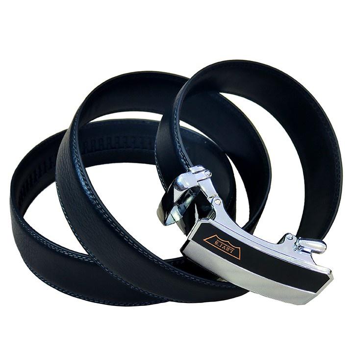 Thắt lưng nam da thật mặt khóa tự động bằng thép sáng bóng không gỉ