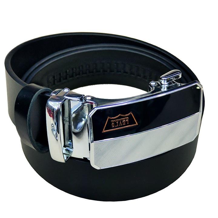 Thắt lưng nam da thật mặt khóa tự động bằng thép sáng bóng không gỉ