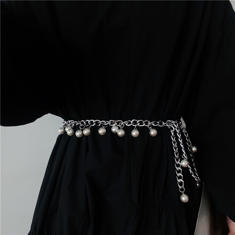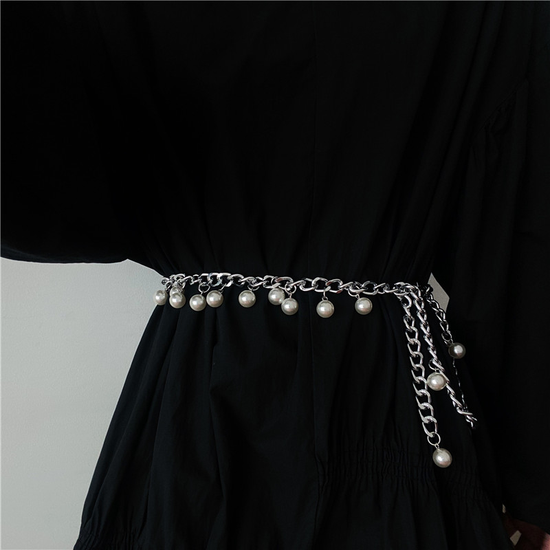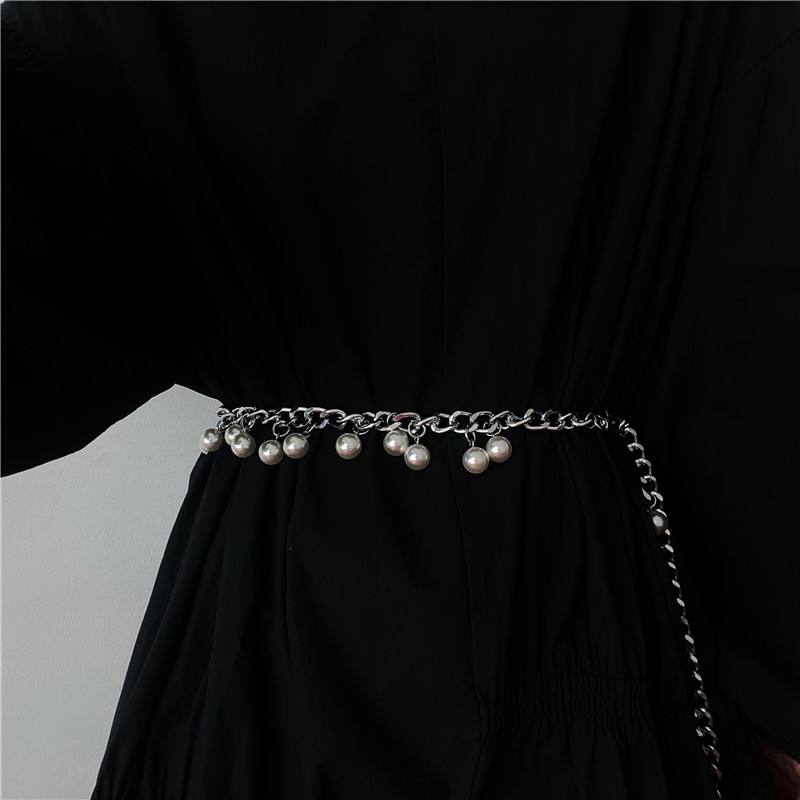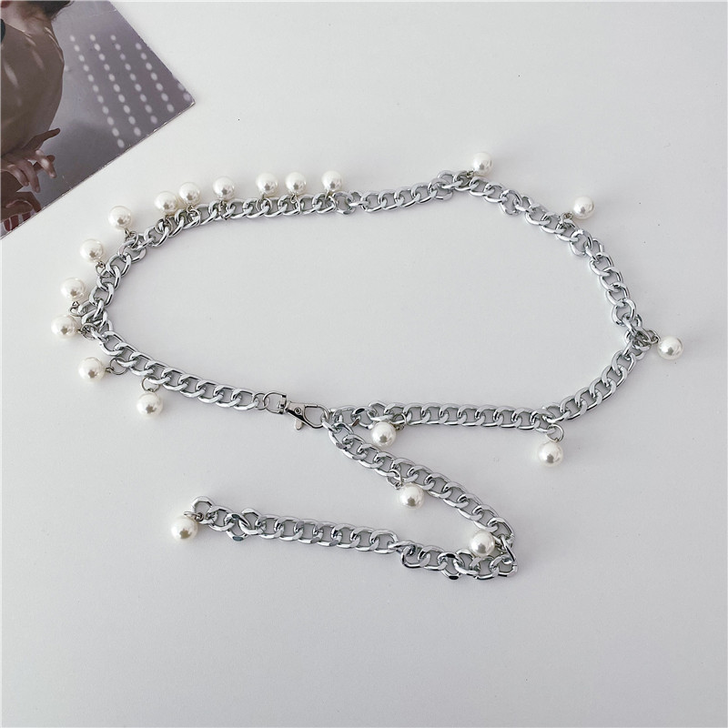 ✨Thắt lưng ngọc trai mix quần jeans chuỗi đai xích đeo hông phối đồ đa phong cách nam nữ unisex cá tính nổi bật