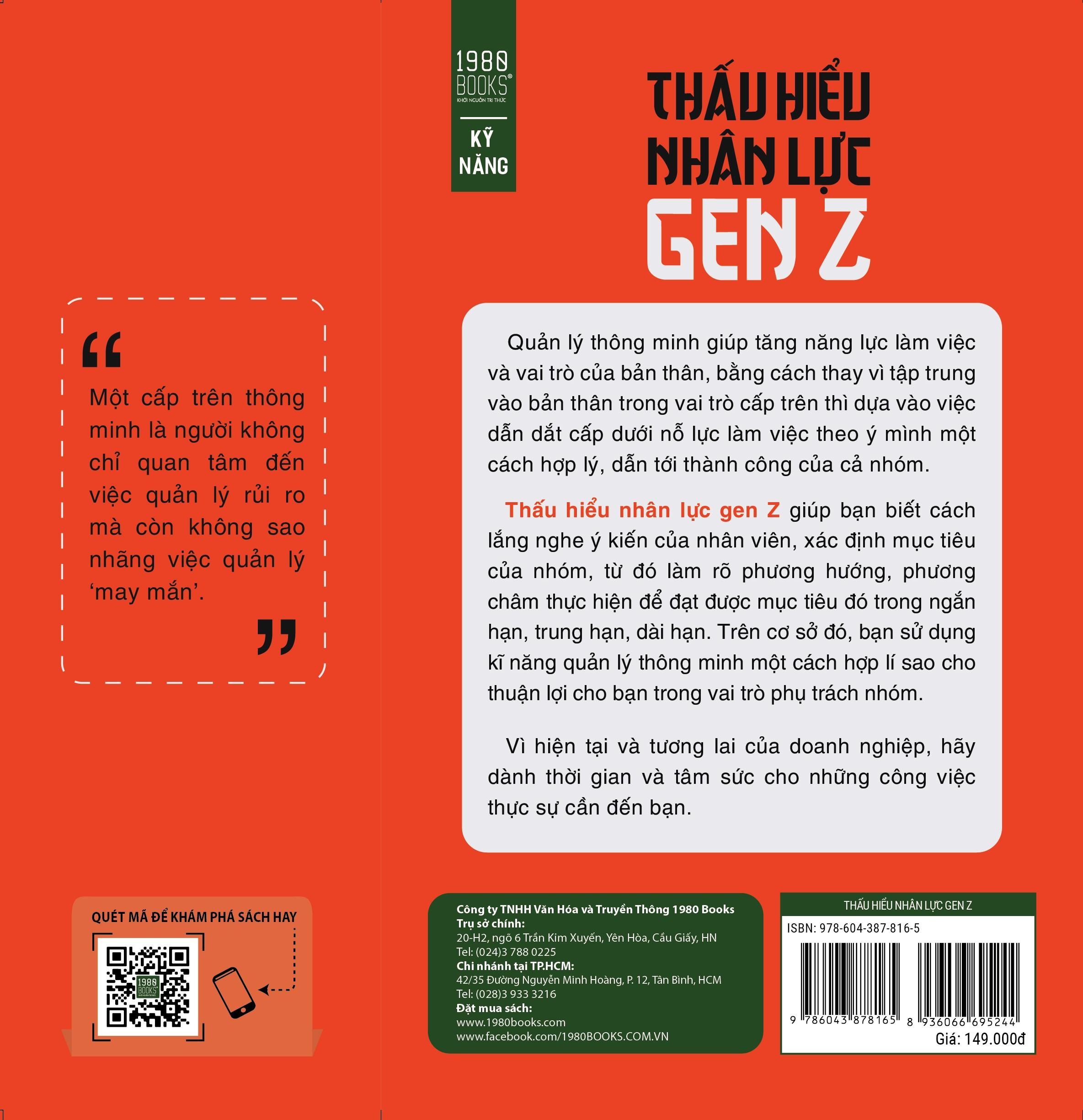 Hãy đọc Thấu hiểu nhân lực gen Z và khám phá xem một cấp trên như bạn nên làm việc thế nào, cách tổ chức nhóm của mình ra sao để đạt được thành công, và làm thế nào để bản thân có thể làm việc trong điều kiện tốt hơn nữa.