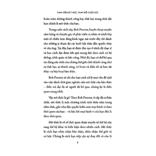 Nhưng để thay đổi được cuộc sống của bạn, bạn PHẢI quyết tâm thay đổi mô thức của mình. Sự thay đổi này không hề dễ dàng nhưng nó đáng giá và mang lại kết quả lâu dài. Bob Proctor sẽ chỉ cho bạn thấy những phương pháp đã được chứng minh bằng thực tế để làm thay đổi mô thức của bạn. Cuốn sách này là tổng hợp những kiến thức, kinh nghiệm của nhiều thập kỉ nghiên cứu, ứng dụng và giảng dạy của Bob Proctor với những điểm nhấn vô cùng quan trọng, nổi bật là:
