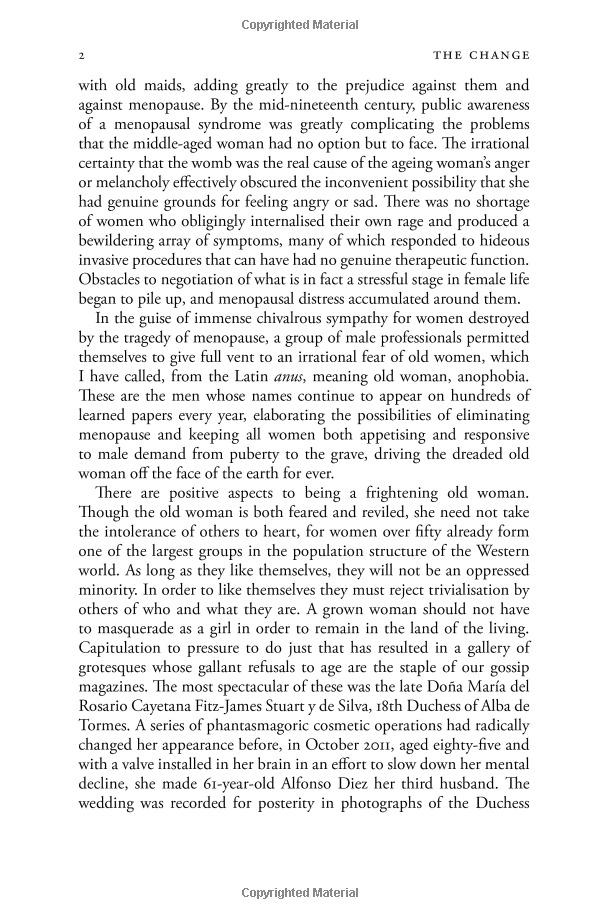 Now more than ever, amid the clamour of online chatrooms and promotions for a vast array of alternative therapies, the individual woman has to manage her passage through menopause for herself. In The Change, Germaine Greer provides a common-sense guide to a very interesting and important stage of women's lives.