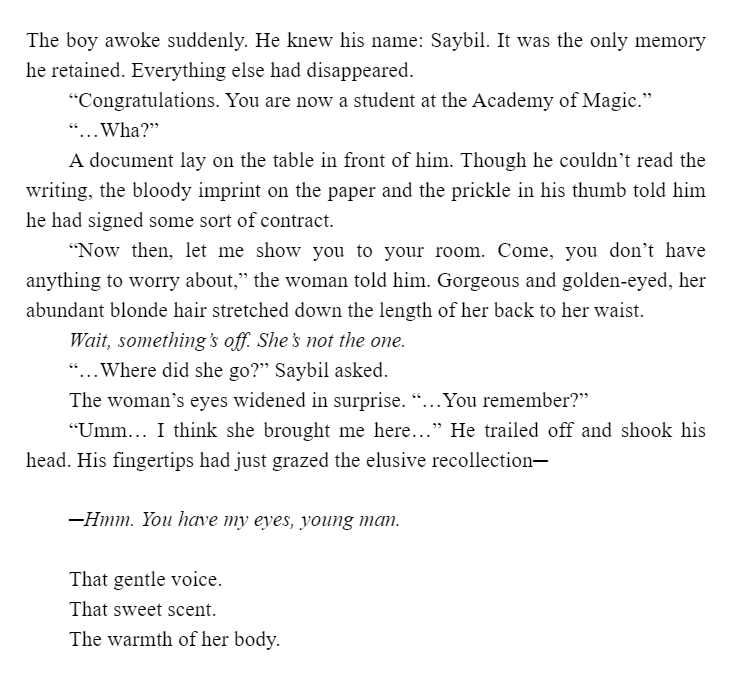This sequel to the popular Grimoire of Zero series introduces new settings and protagonists, while retaining the thrilling action, detailed worldbuilding, and emotional resonance of its predecessor. Saybil is a magic student with no memories of his life before he met a mysterious silver-haired woman in an alley. Now he travels with his teacher, Loux, another student named Holt, and the beastfallen Kudo for 'special training' but this field trip may not be as routine as it seems!