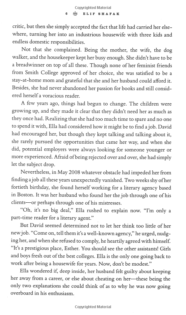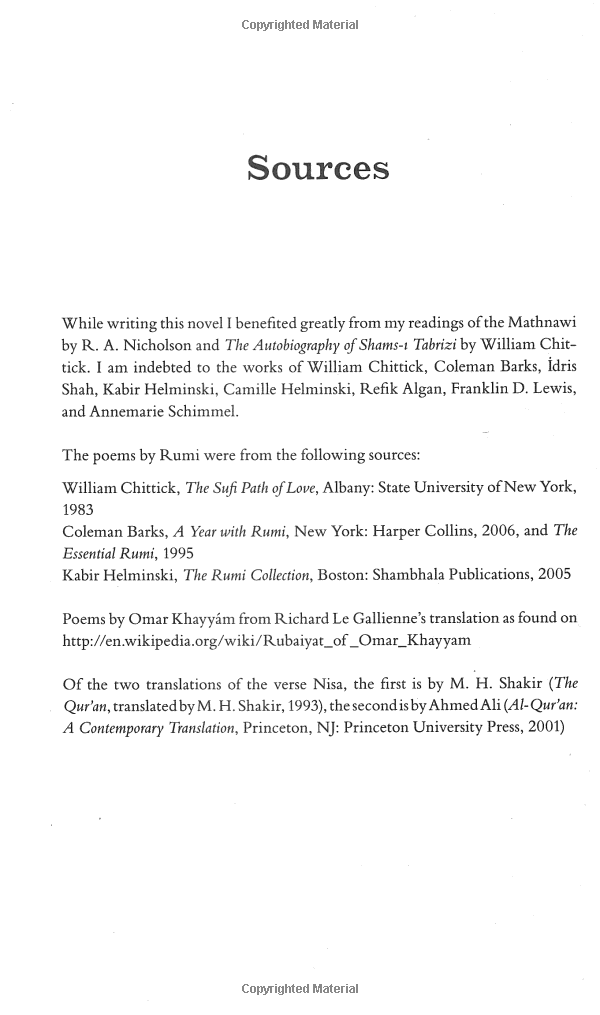 Ella Rubinstein has a husband, three teenage children, and a pleasant home. Everything that should make her confident and fulfilled. Yet there is an emptiness at the heart of Ella's life - an emptiness once filled by love. So when Ella reads a manuscript about the thirteenth-century Sufi poet Rumi and Shams of Tabriz, and his forty rules of life and love, she is shocked out of herself. Turning her back on her family she embarks on a journey to meet the mysterious author of this work. It is a quest infused with Sufi mysticism and verse, taking Ella and us into an exotic world where faith and love are heartbreakingly
