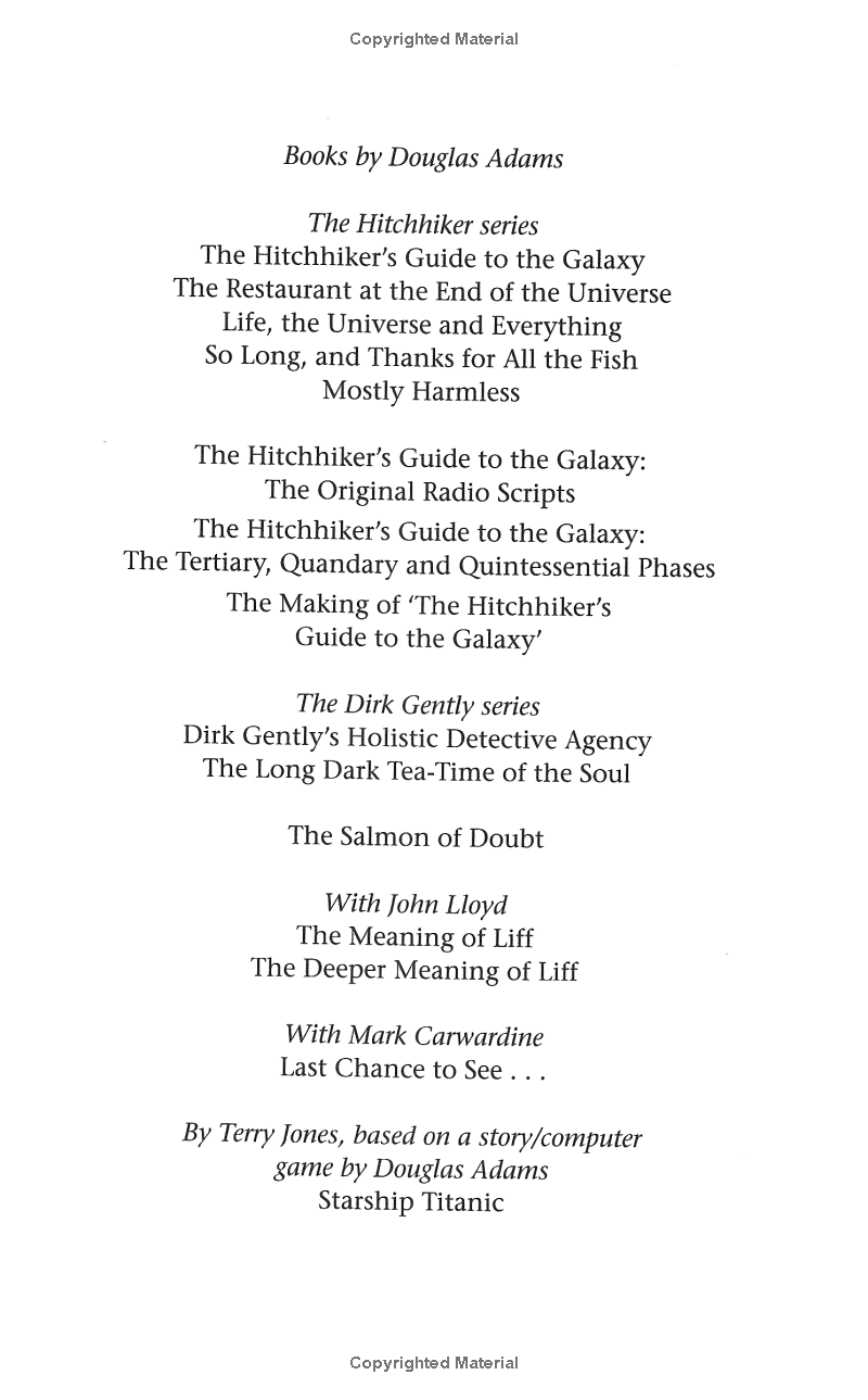 It's an ordinary Thursday lunchtime for Arthur Dent until his house gets demolished. The Earth follows shortly afterwards to make way for a new hyperspace express route, and his best friend has just announced that he's an alien. At this moment, they're hurtling through space with nothing but their towels and an innocuous-looking book inscribed, in large friendly letters, with the words: DON'T PANIC.