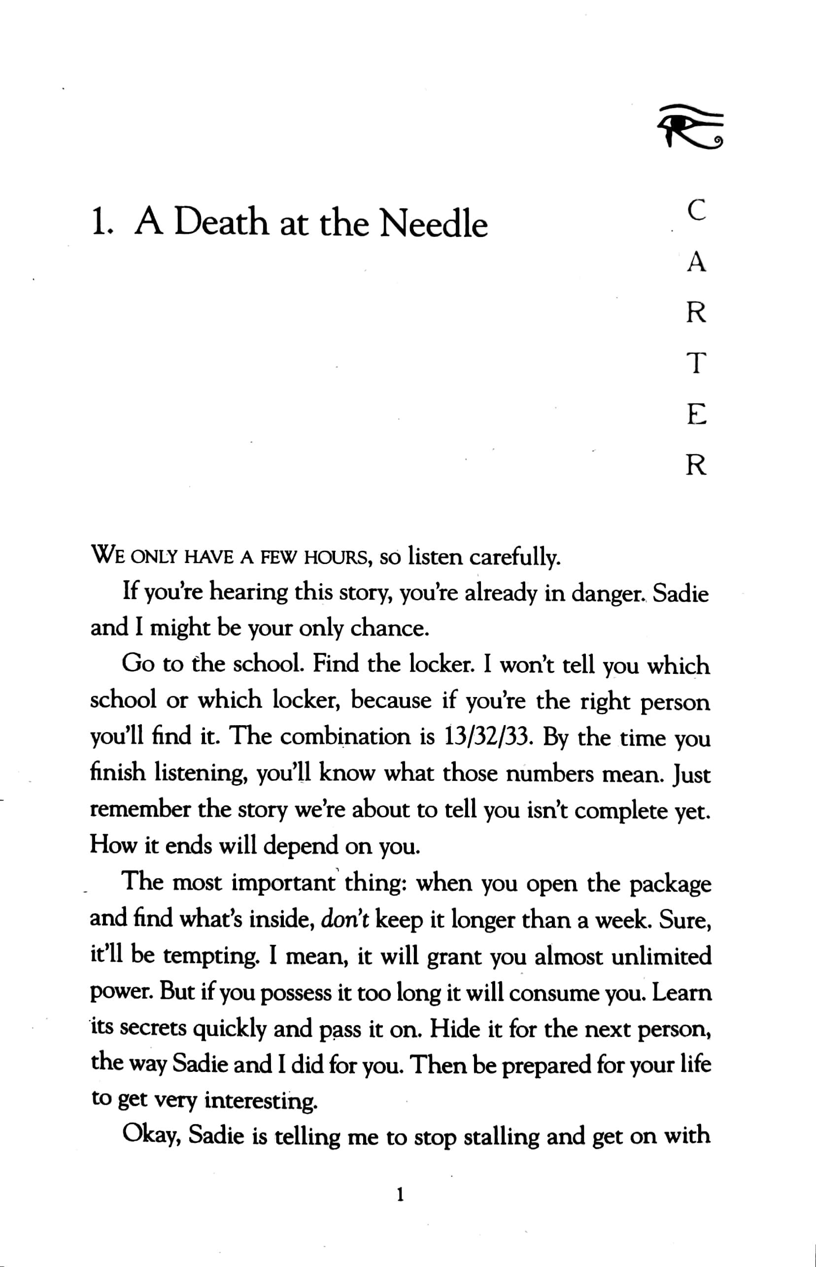 CARTER AND SADIE KANE'S dad is a brilliant Egyptologist with a secret plan that goes horribly wrong. An explosion shatters the ancient Rosetta stone and unleashes Set, the evil god of chaos...