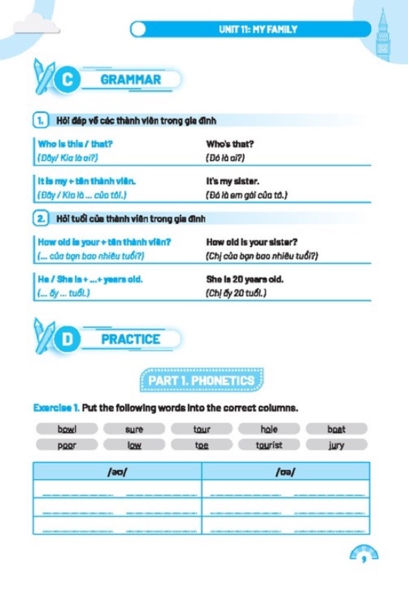 Bài tập bổ trợ và nâng cao Tiếng Anh được biên soạn với hệ thống bài tập vô cùng đa dạng. Mỗi đơn vị bài tập gồm 5 phần: