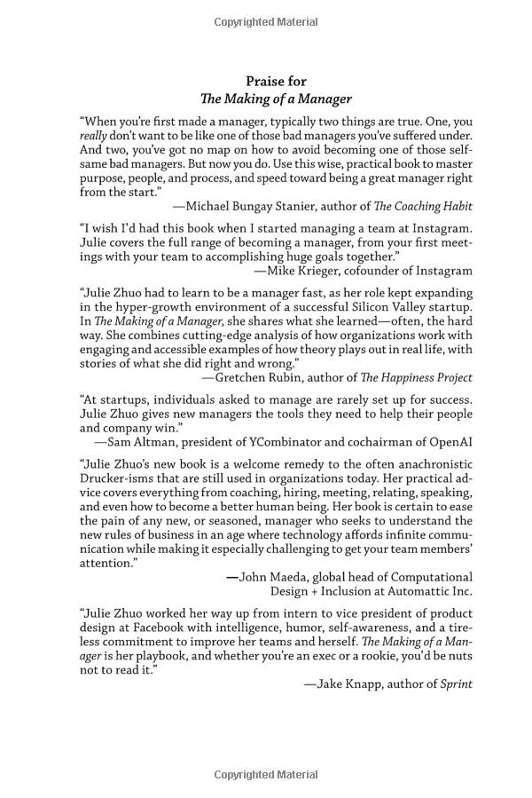 Now, having managed dozens of teams spanning tens to hundreds of people, Julie knows the most important lesson of all: great managers are made, not born. If you care enough to be reading this, then you care enough to be a great manager.