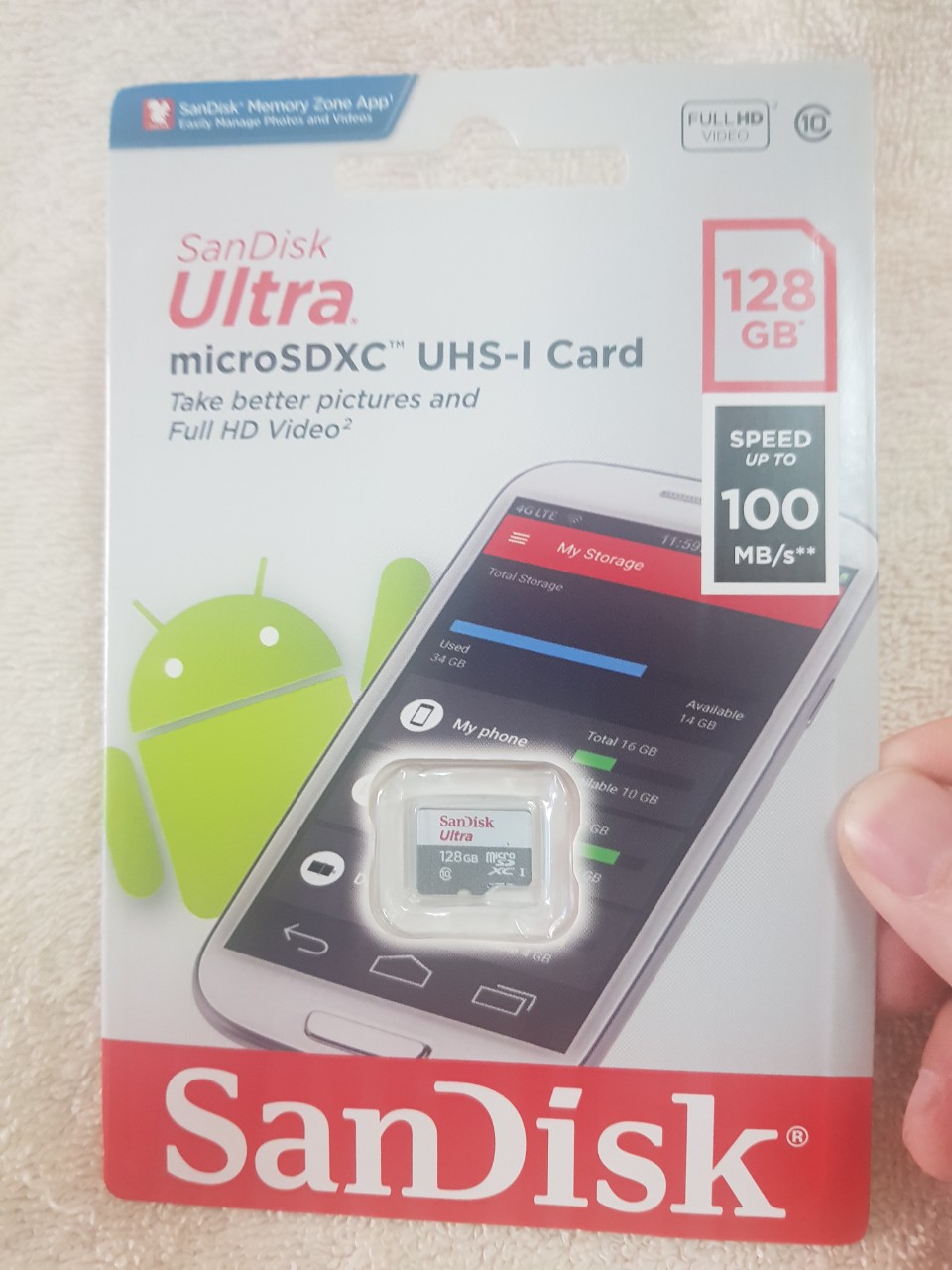 - Thẻ Nhớ Micro SDXC SanDiskk UHS-1 128GB Class 10 với dung lượng lưu trữ 128GB, bạn có thể thoải mái lưu trữ rất nhiều những dữ liệu, tập tin khác nhau như hình ảnh, âm thanh, video, tài liệu.